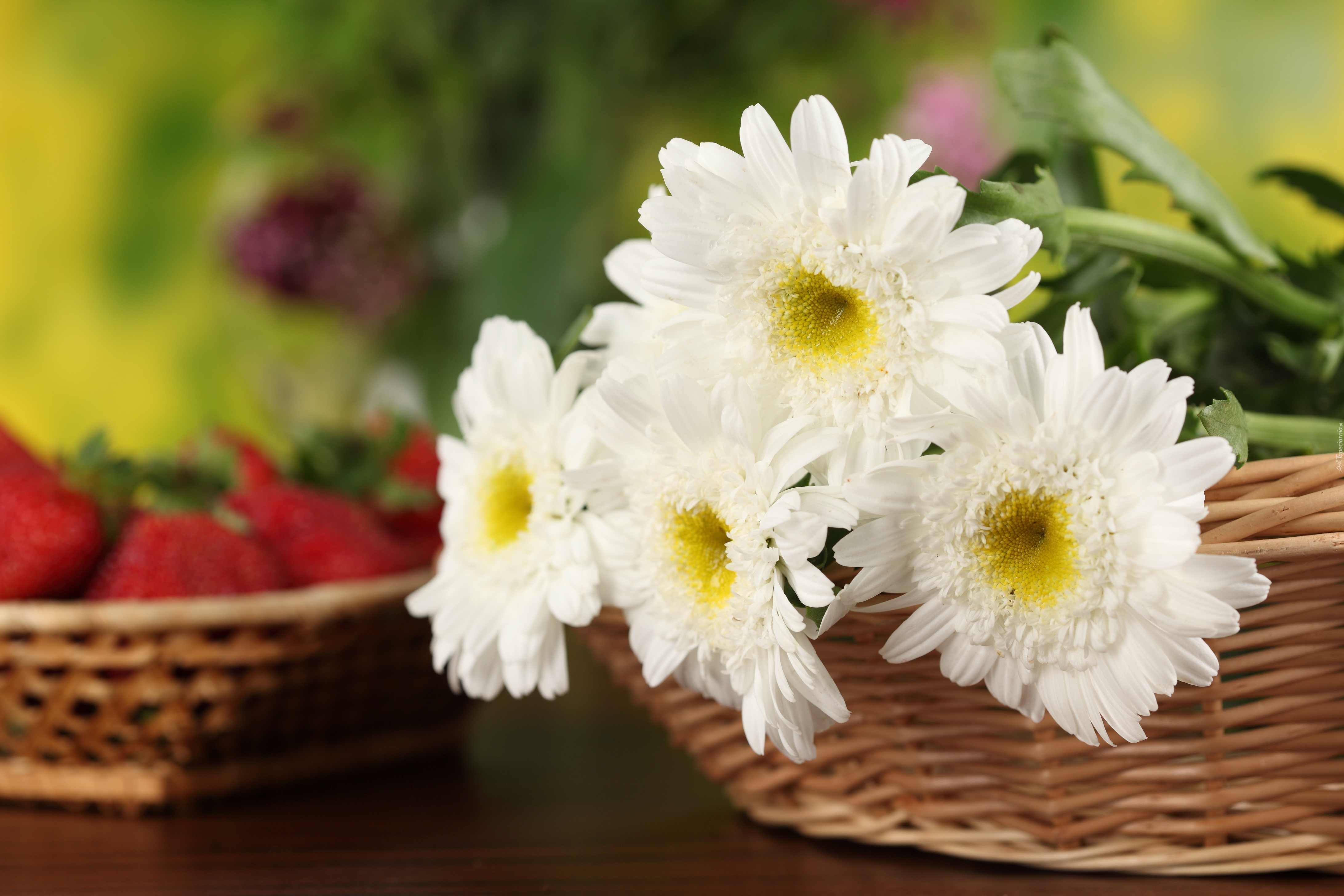 Edytor tapety: Koszyk, Białe, Chryzantemy