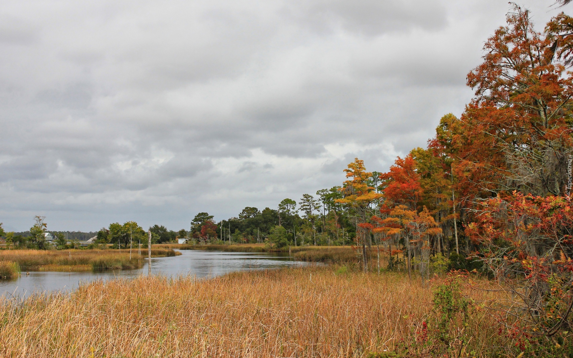 Edytor tapety: Rzeka, Trawy, Drzewa