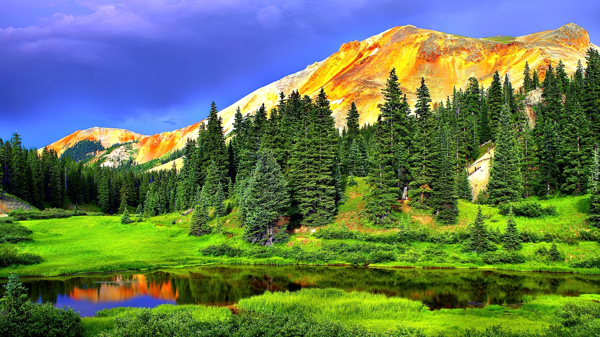 Edytor tapety: Góry, Choinki, Jezioro