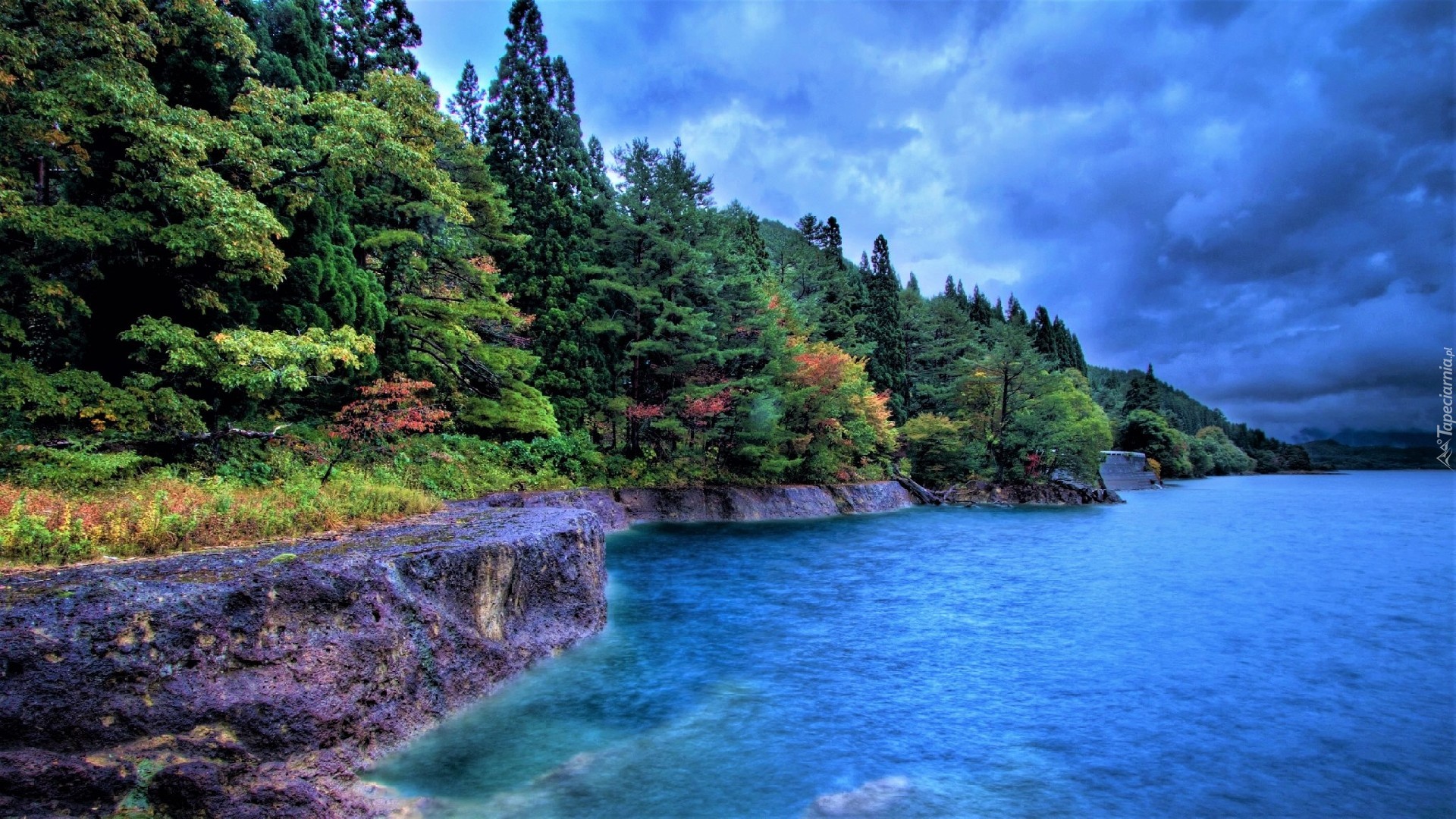 Edytor tapety: Drzewa, Chmury, Jezioro