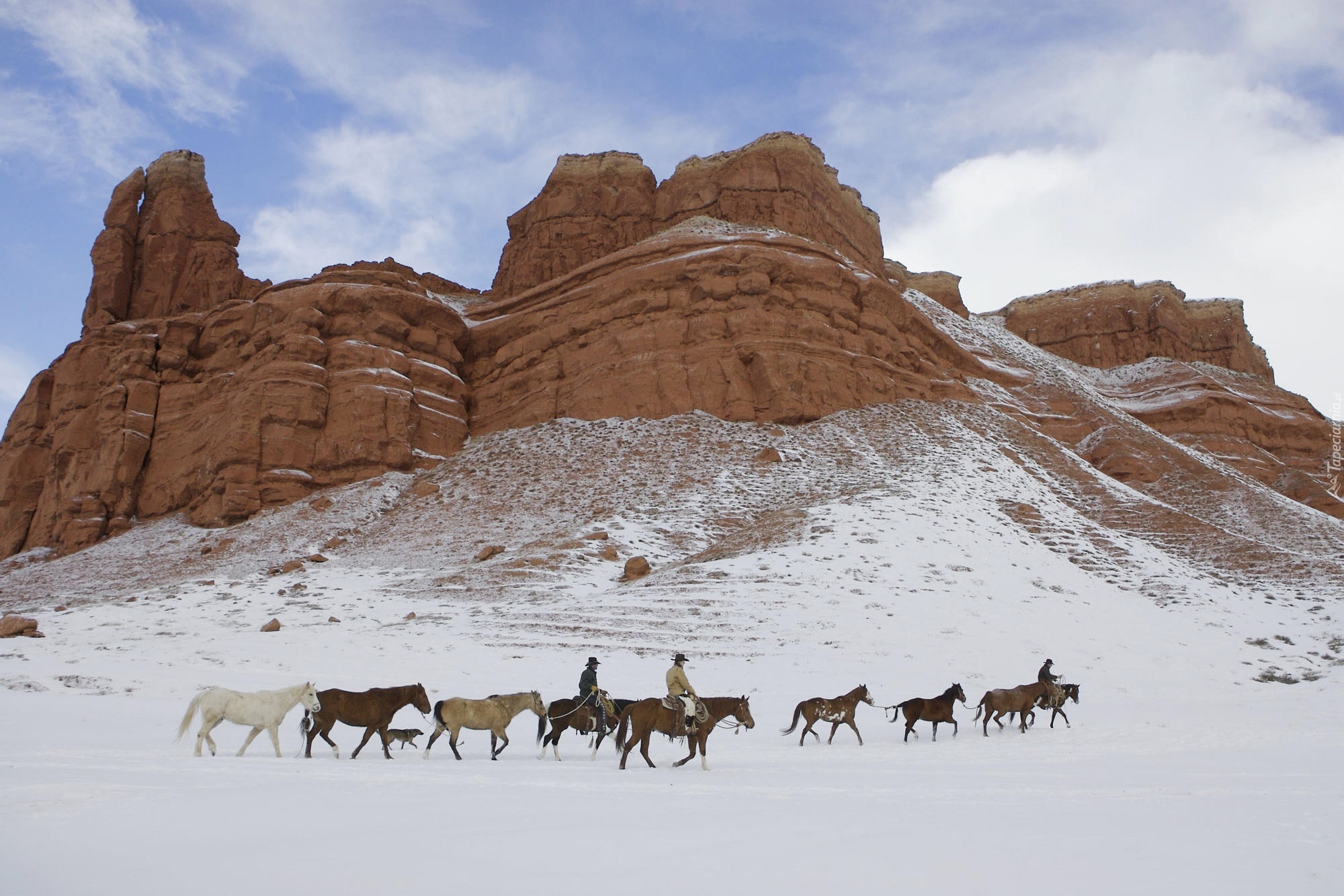 Edytor tapety: Góry, Śnieg, Konie