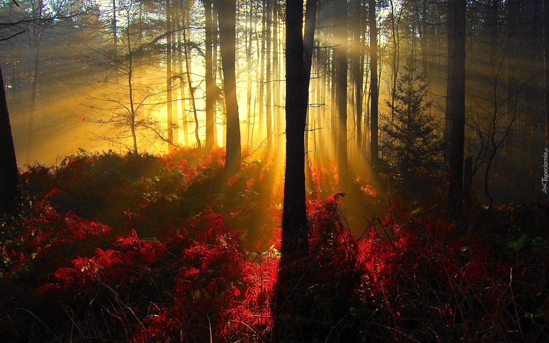 Edytor tapety: Drzewa, Kolorowe, Krzewy, Przebijające, Słońce