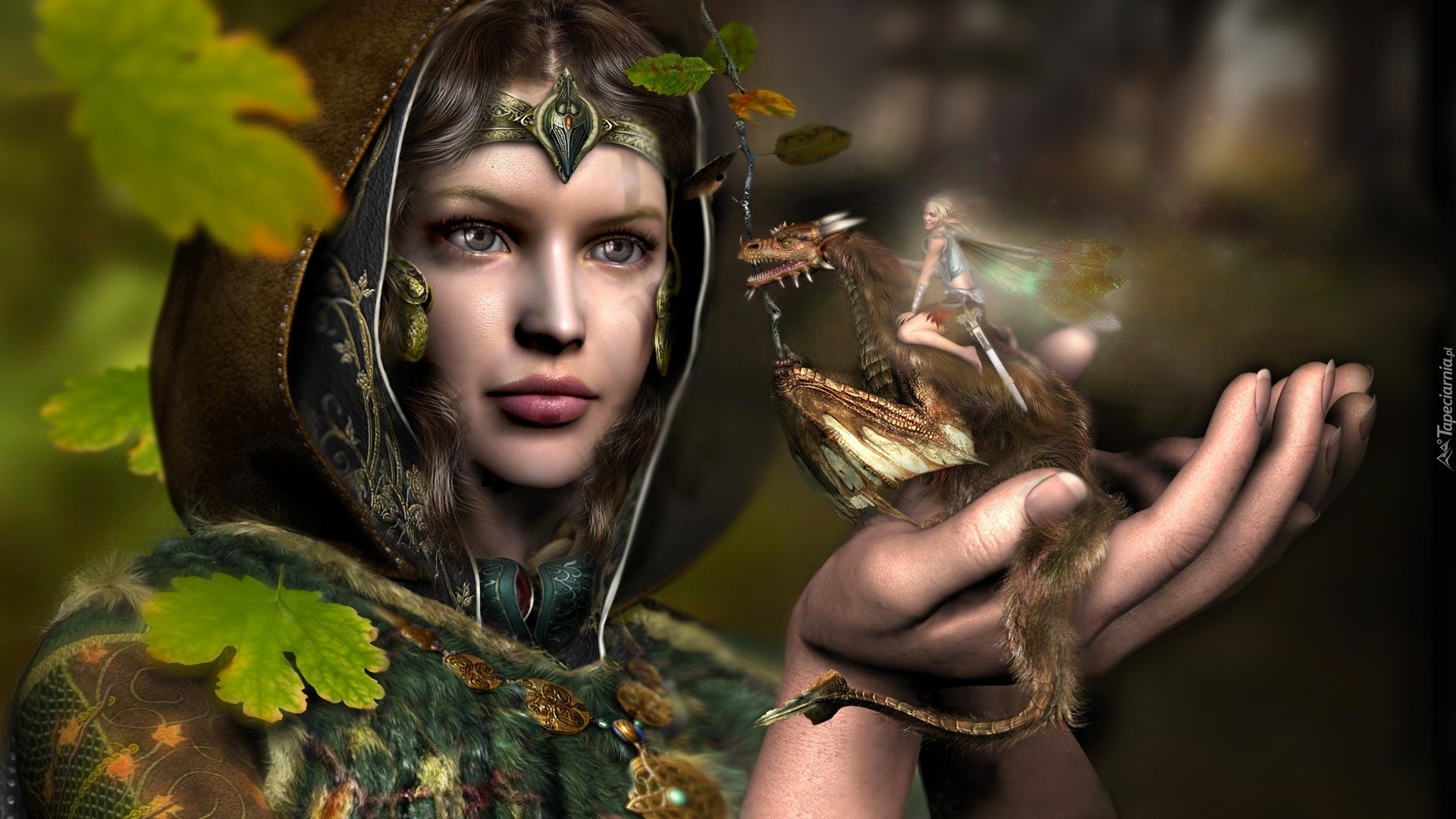 Edytor tapety: Kobieta, Dłoń, Smok