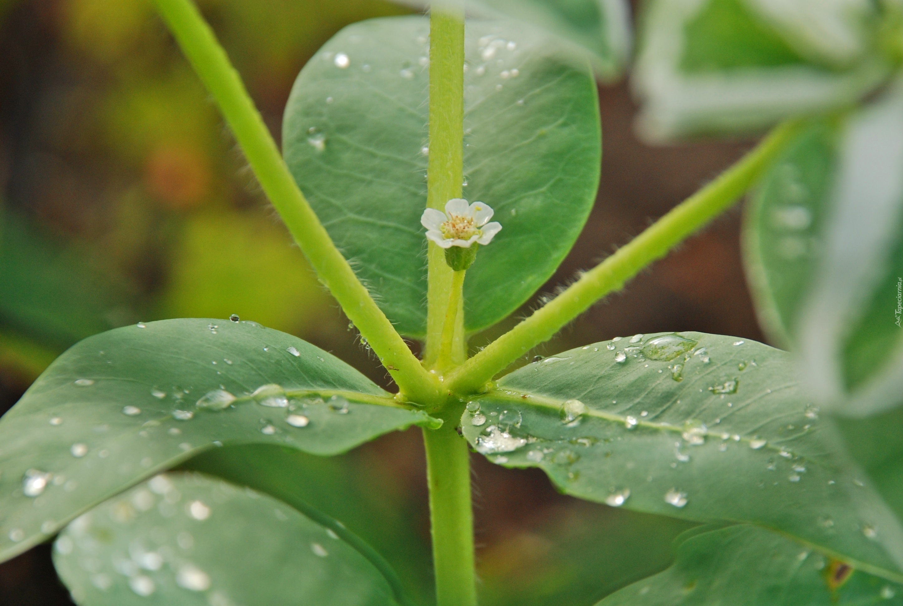Edytor tapety: Liście, Łodyga, Krople, Deszczu, Biały, Kwiatek
