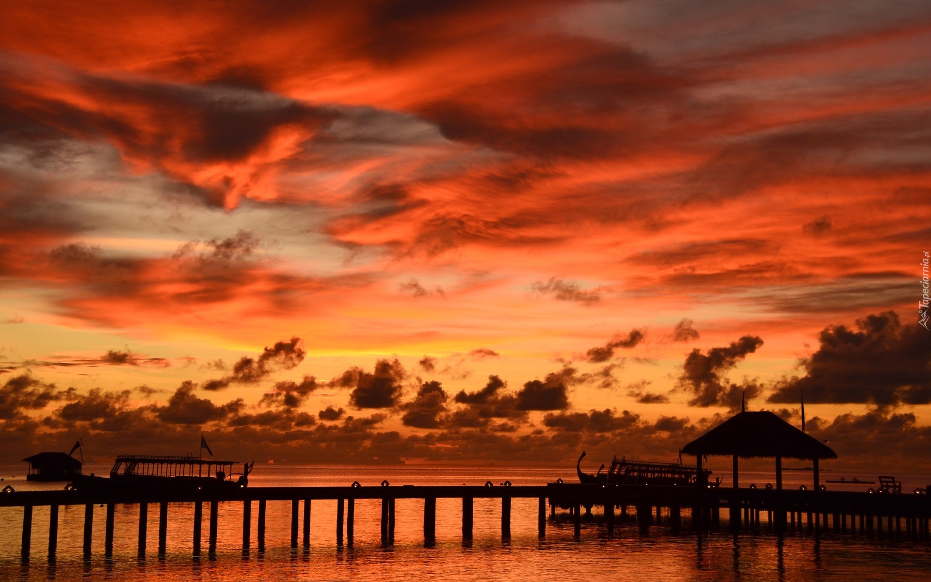 Edytor tapety: Zachód, Słońca, Morze, Molo, Przystań