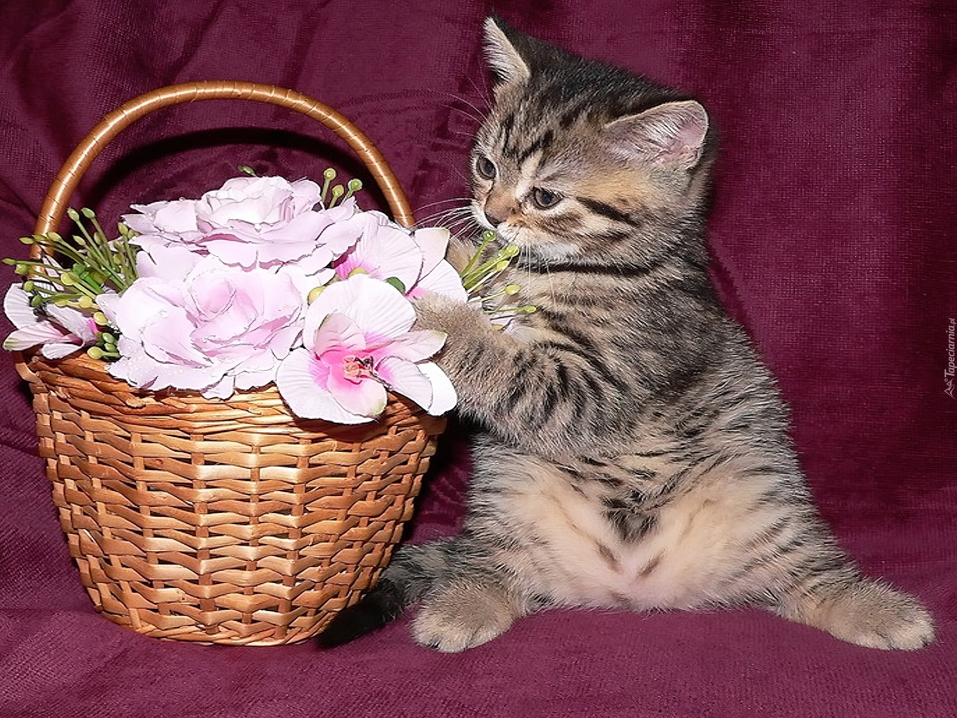 Edytor tapety: Kotek, Koszyk, Kwiatki