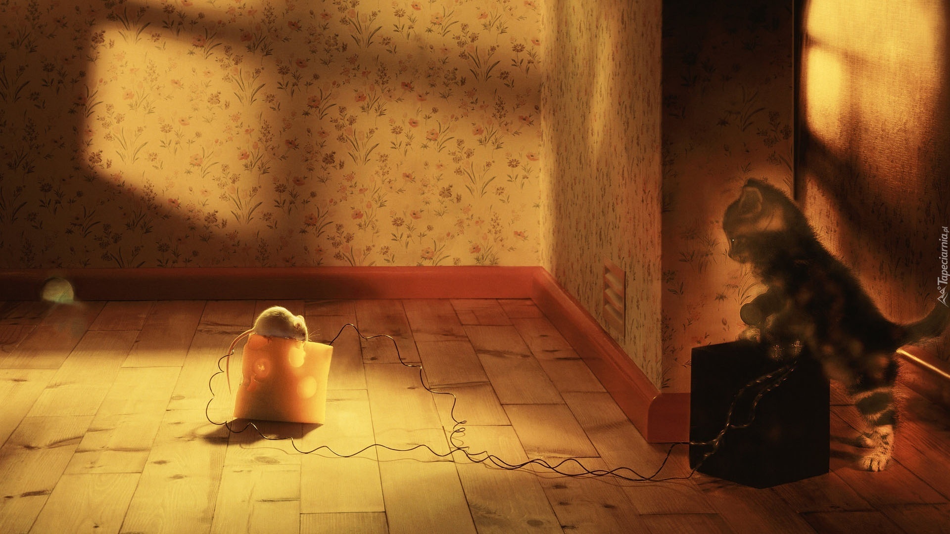 Edytor tapety: Kot, Polowanie, Mysz, Dom