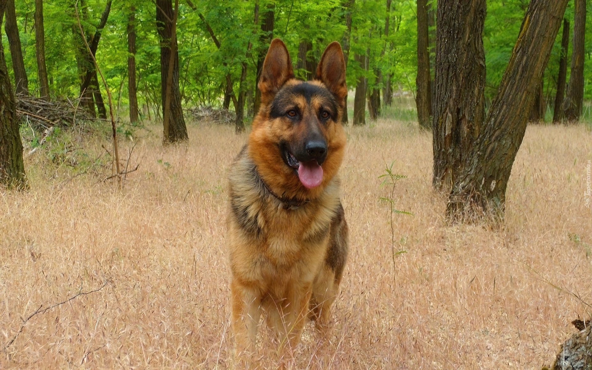 Edytor tapety: Owczarek, Niemiecki, Drzewa, Sucha, Trawa