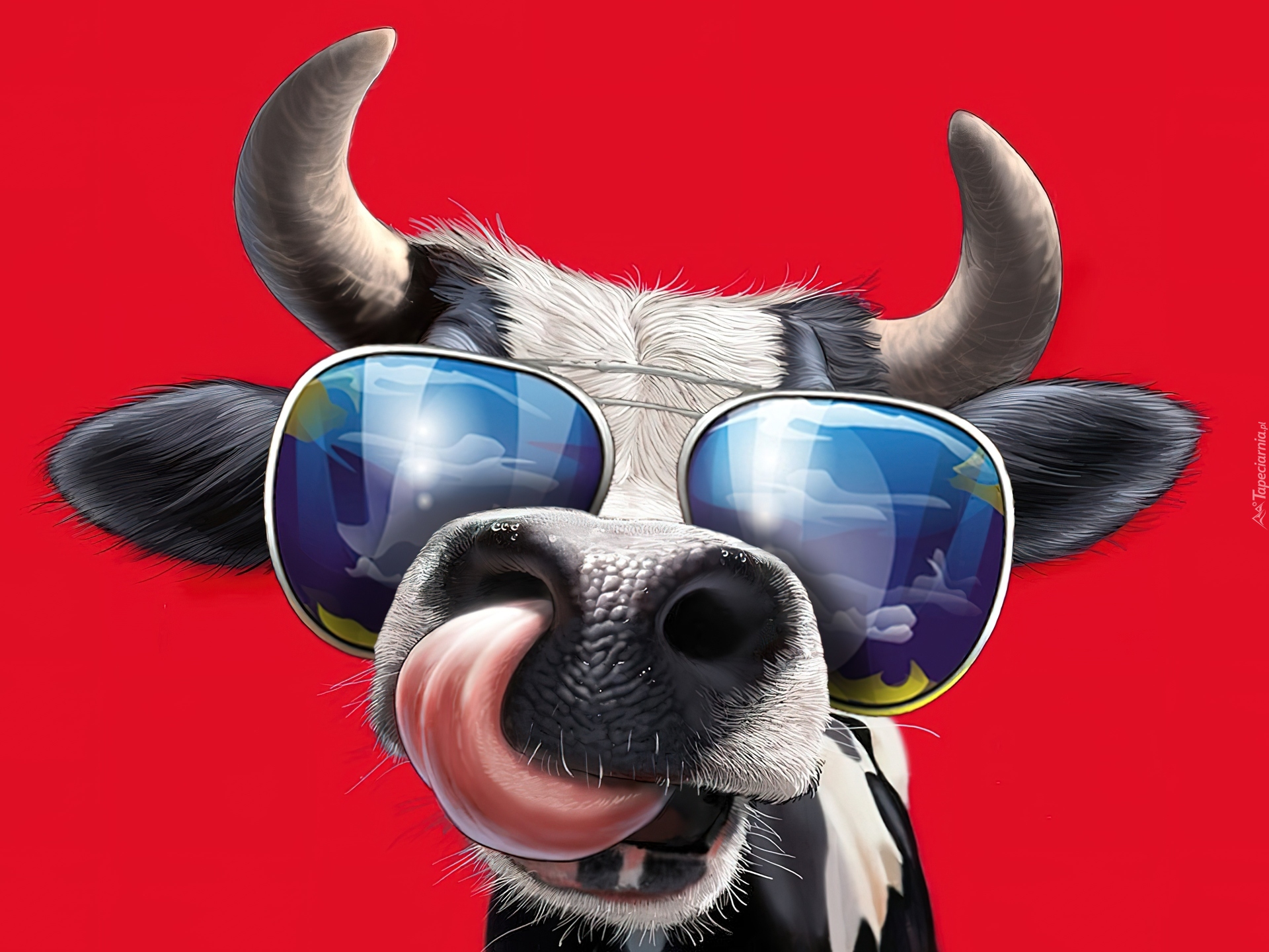 Edytor tapety: Krowa, Język, Okulary, Rogi