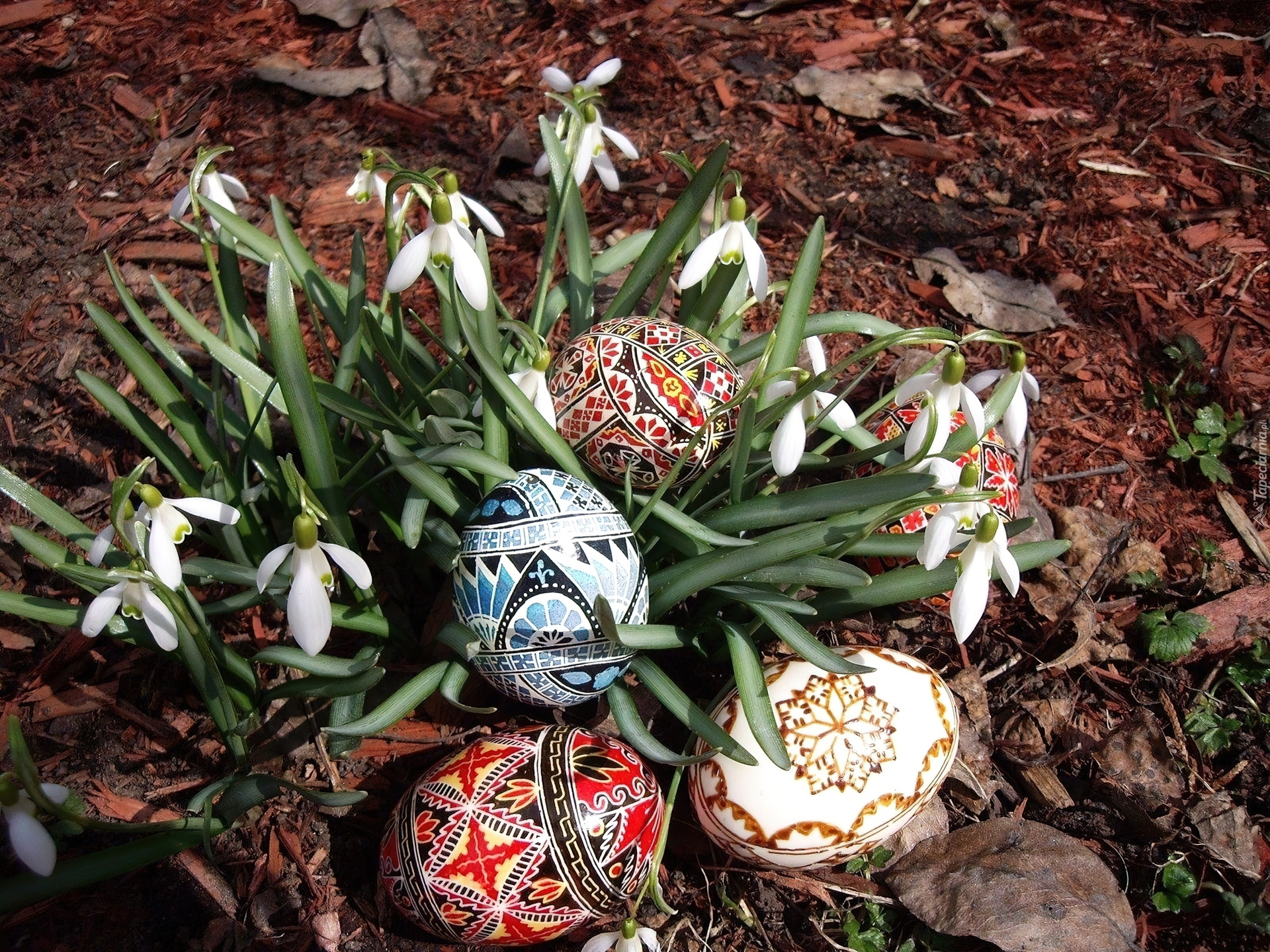 Edytor tapety: Wielkanocne, Pisanki, Przebiśniegi