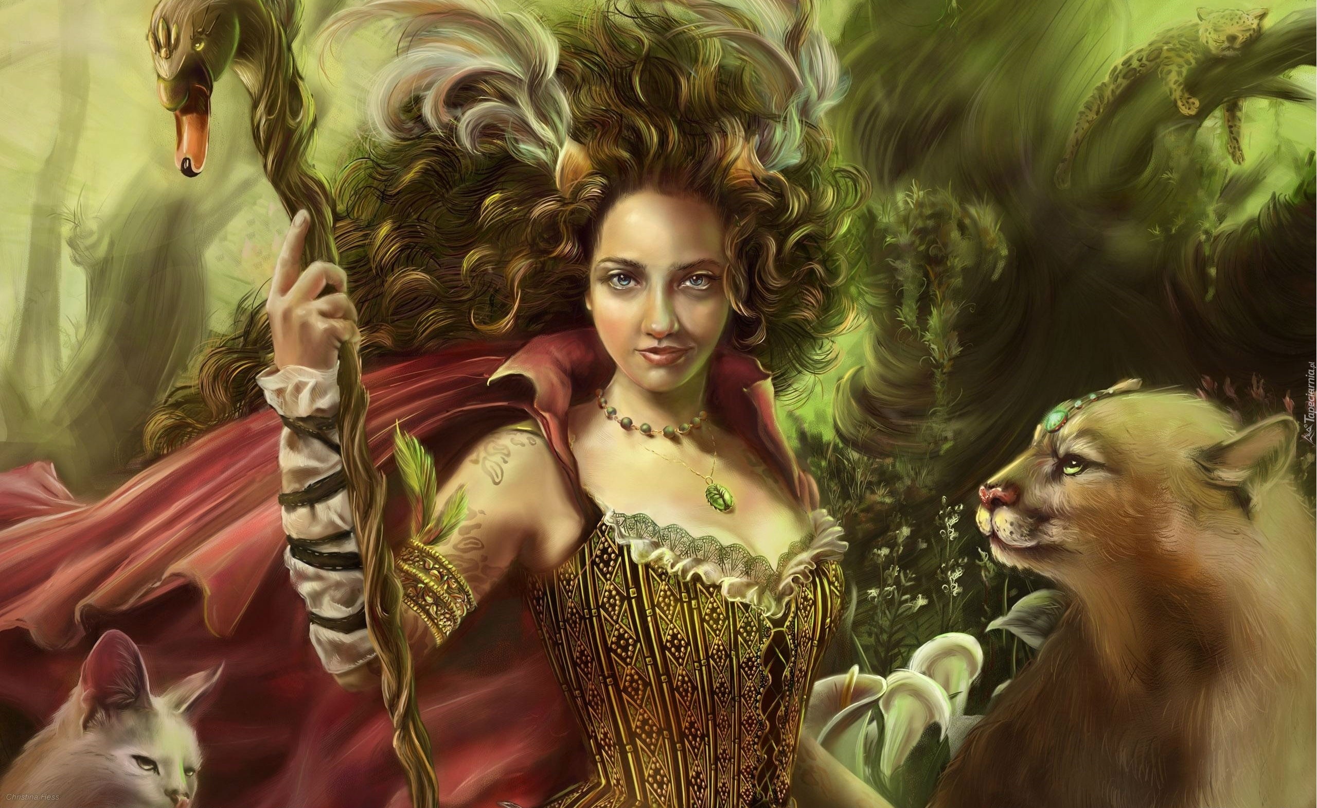 Edytor tapety: Dziewczyna, Włosy, Naszyjnik, Zwierzęta