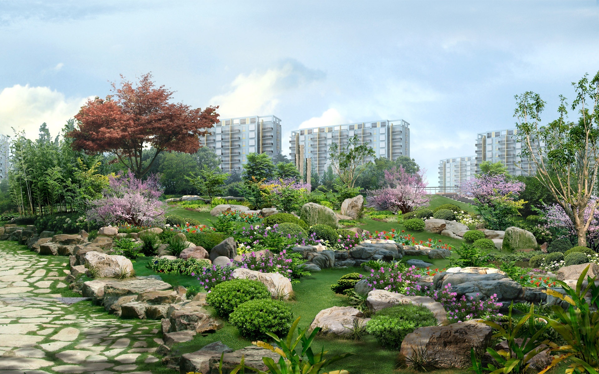 Edytor tapety: Park, Budynki