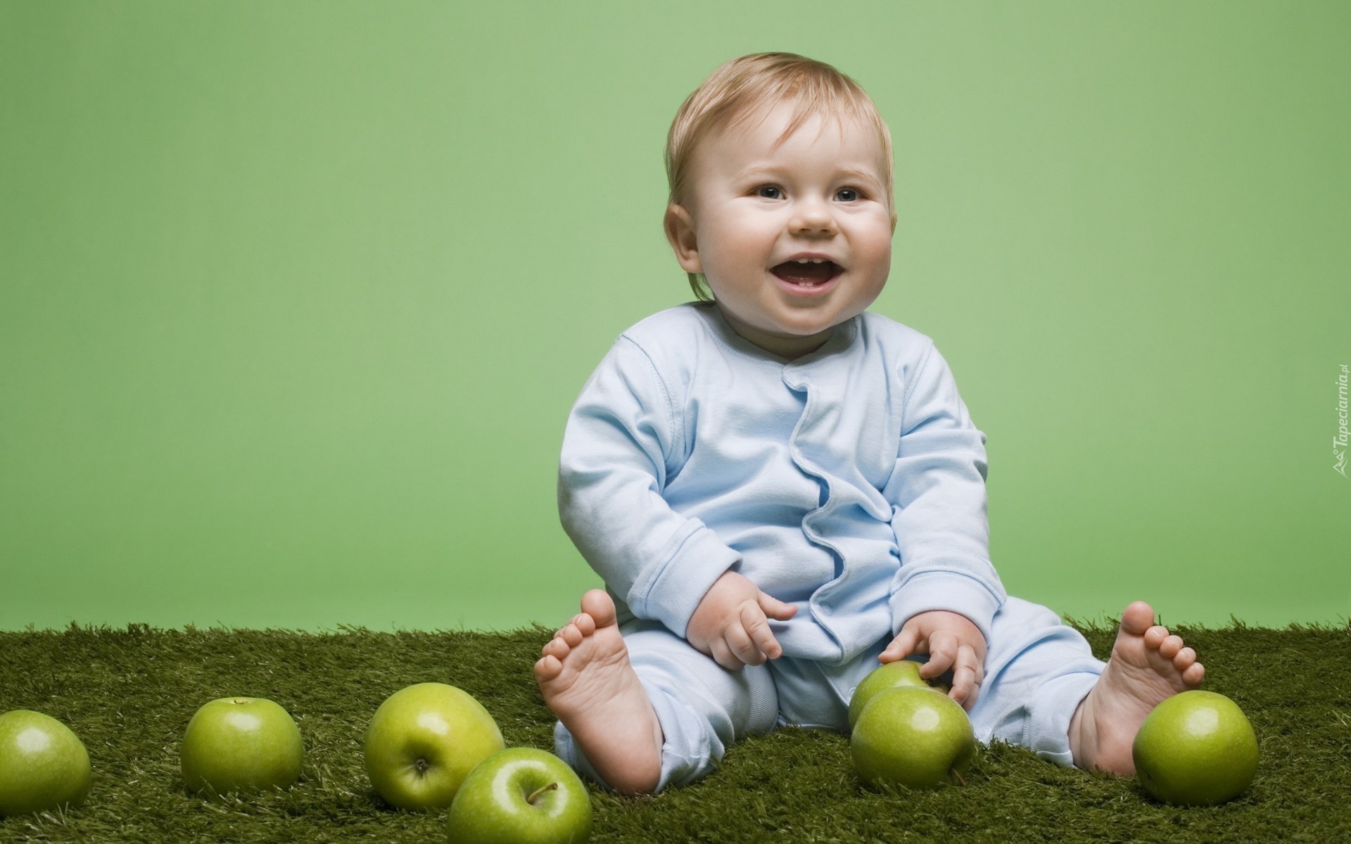 Edytor tapety: Uśmiechnięte, Dziecko, Zielone, Jabłuszka