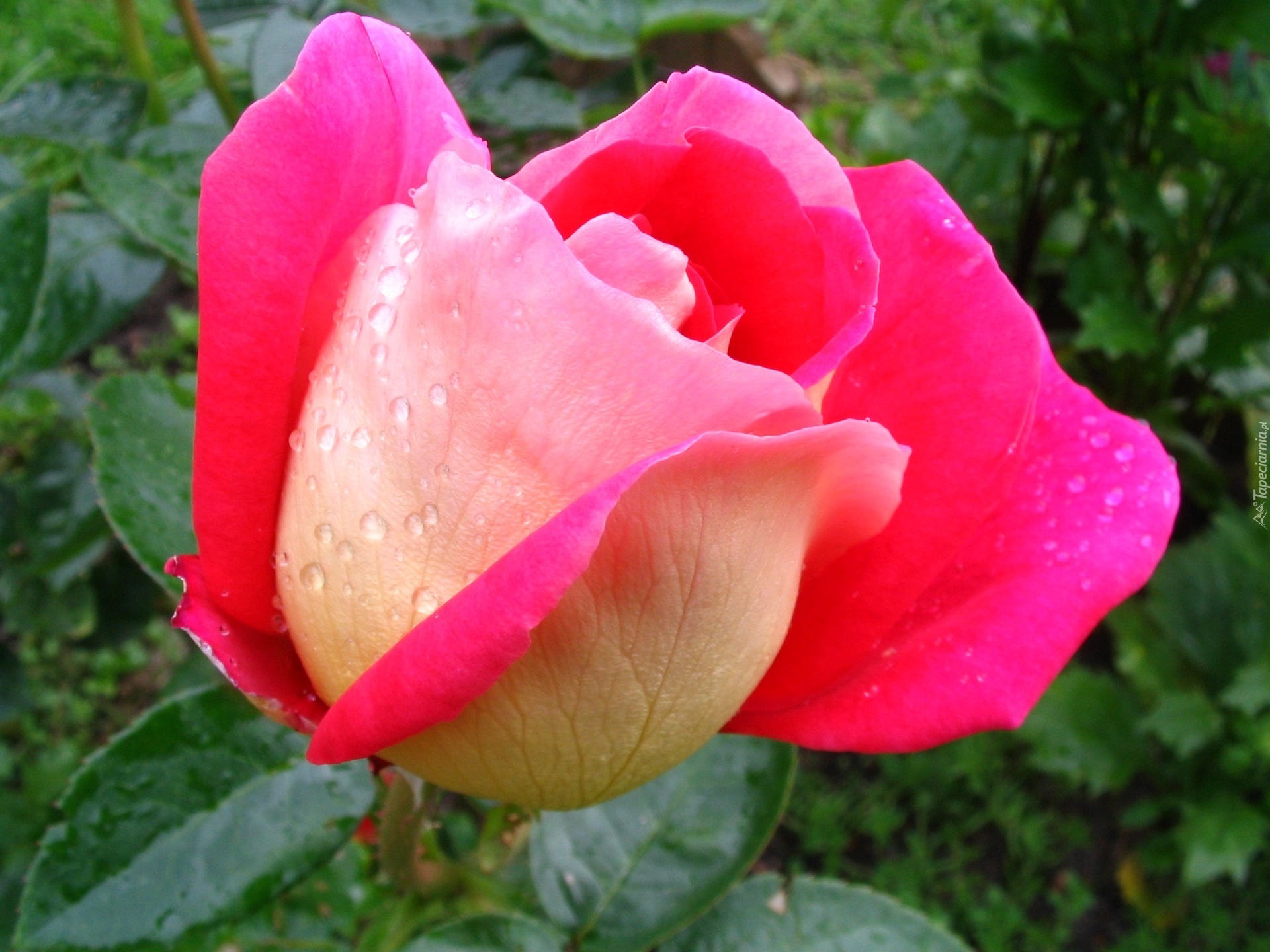 Edytor tapety: Kwiat, Róża, Różowo, Kremowa, Kropelki, Rosy