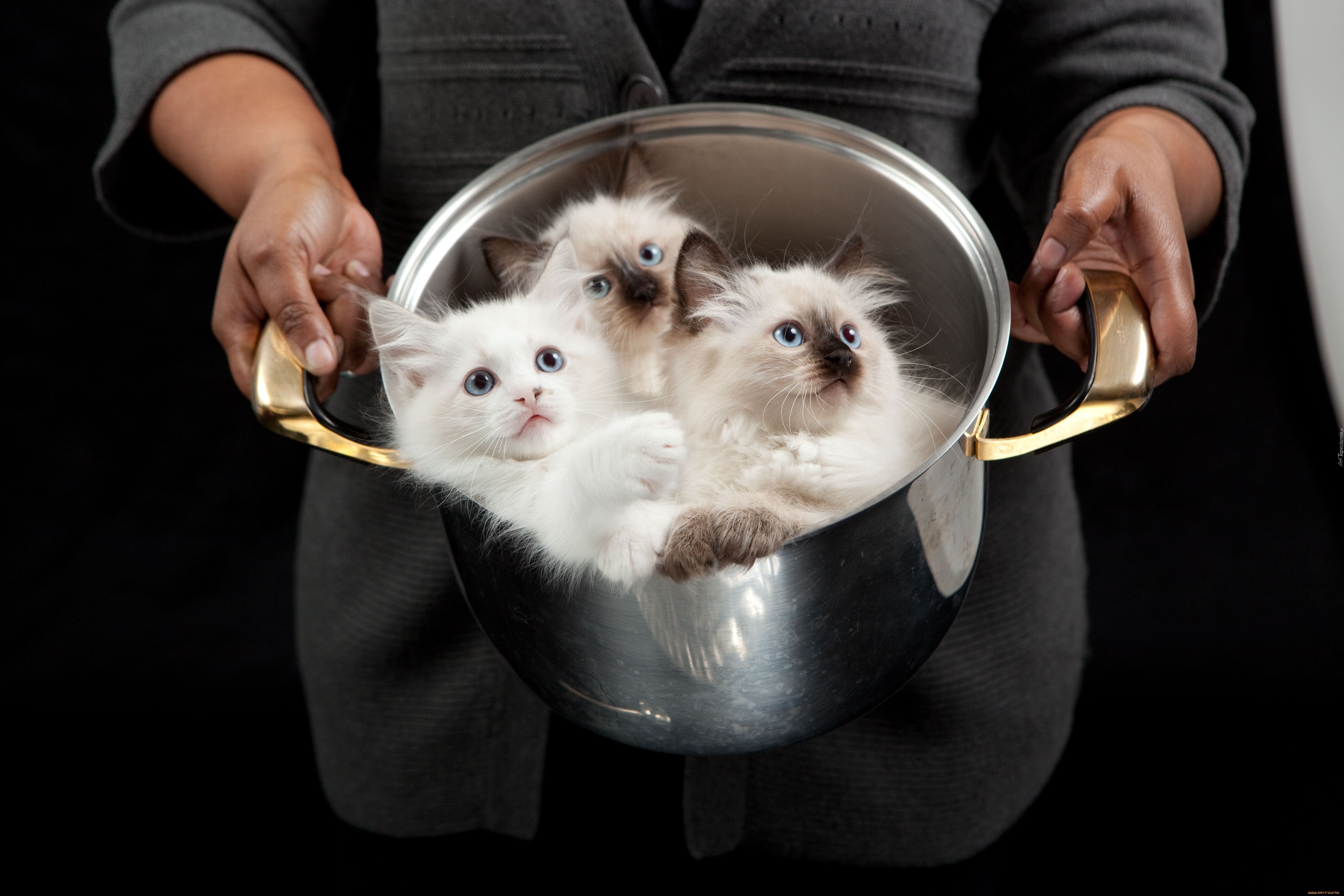 Edytor tapety: Trzy, Kotki, Garnek, Dłonie