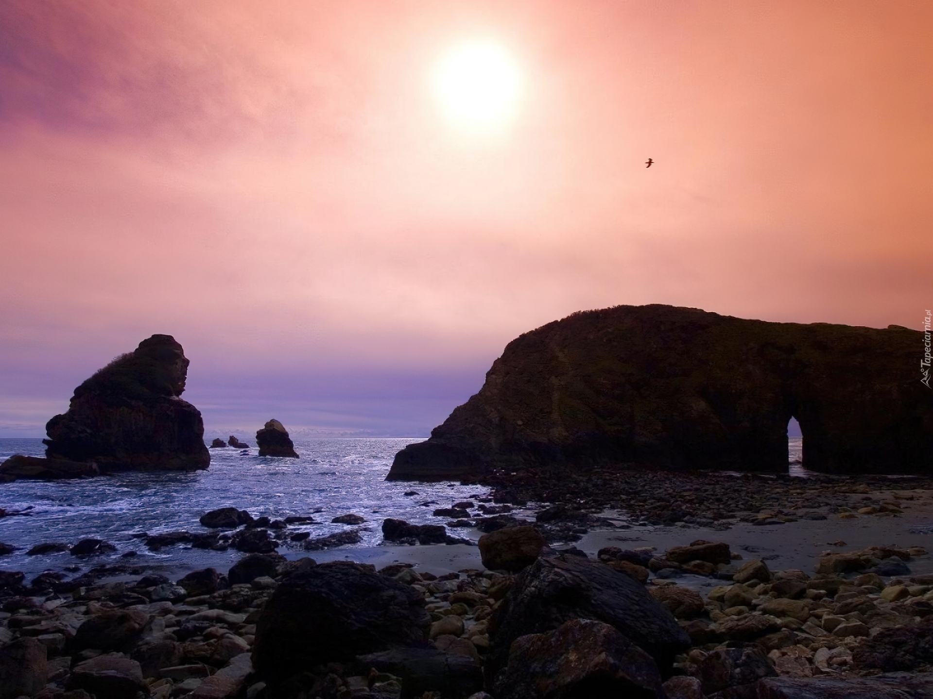 Edytor tapety: Morze, Fale, Skały, Kamienie, Słońce