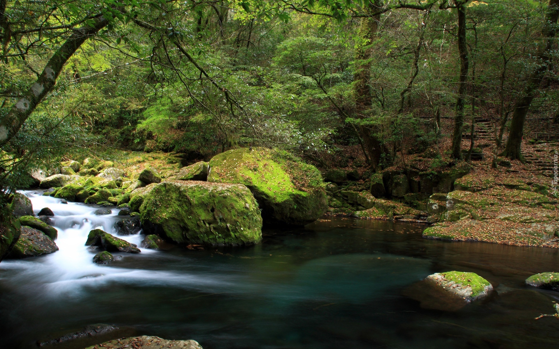 Edytor tapety: Drzewa, Rzeczka, Skały, Schody