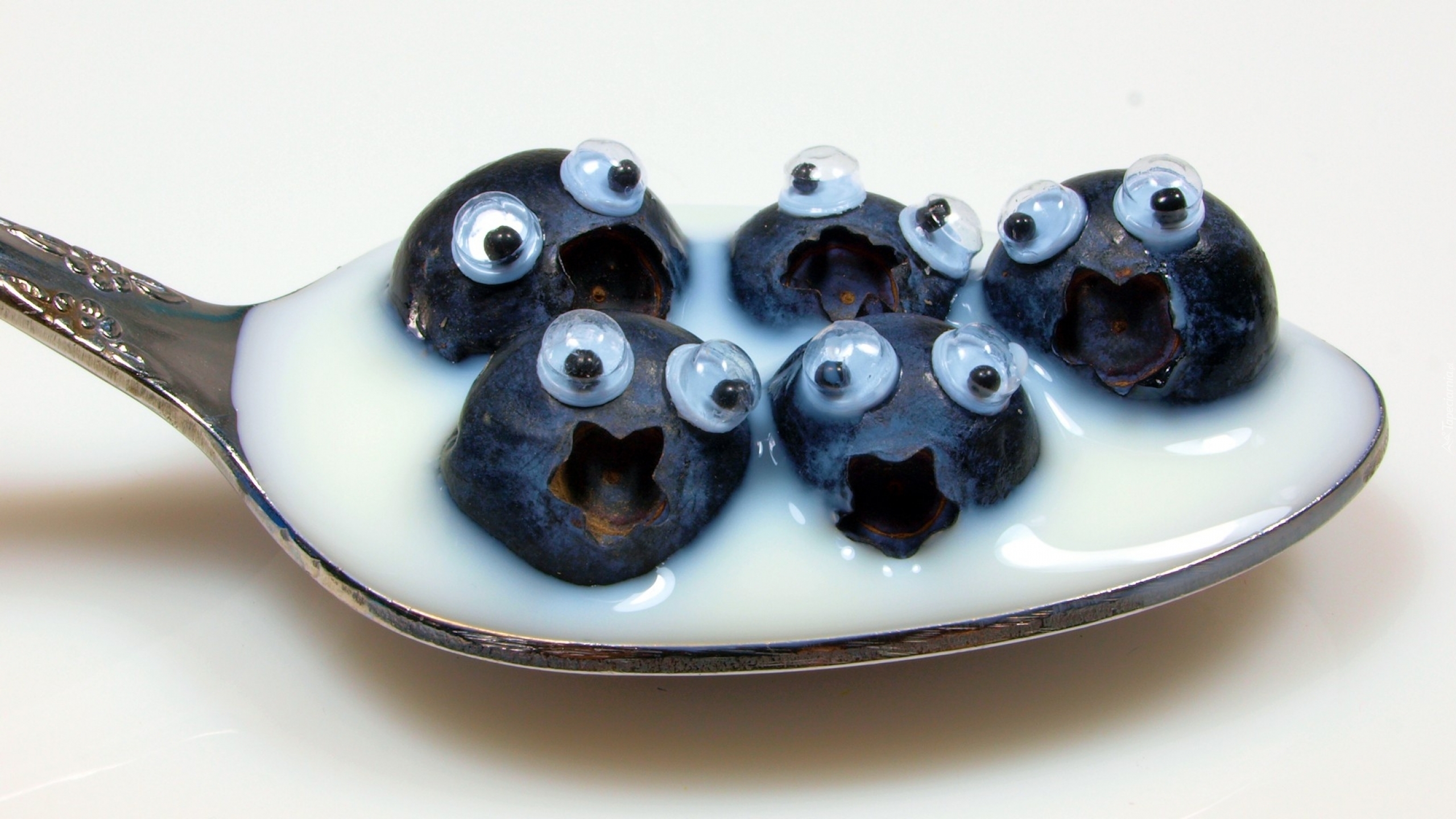 Edytor tapety: Oczy, Łyżeczka, Borówki