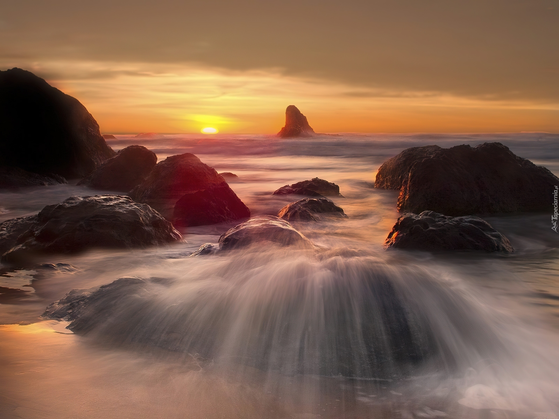 Edytor tapety: Morze, Skały, Zachód