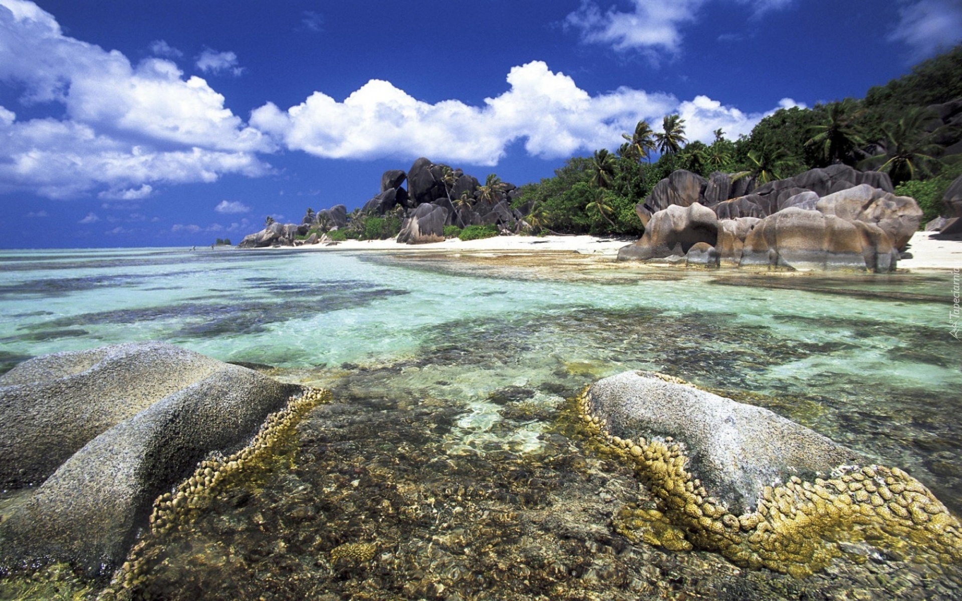 Edytor tapety: Woda, Skały, Palmy