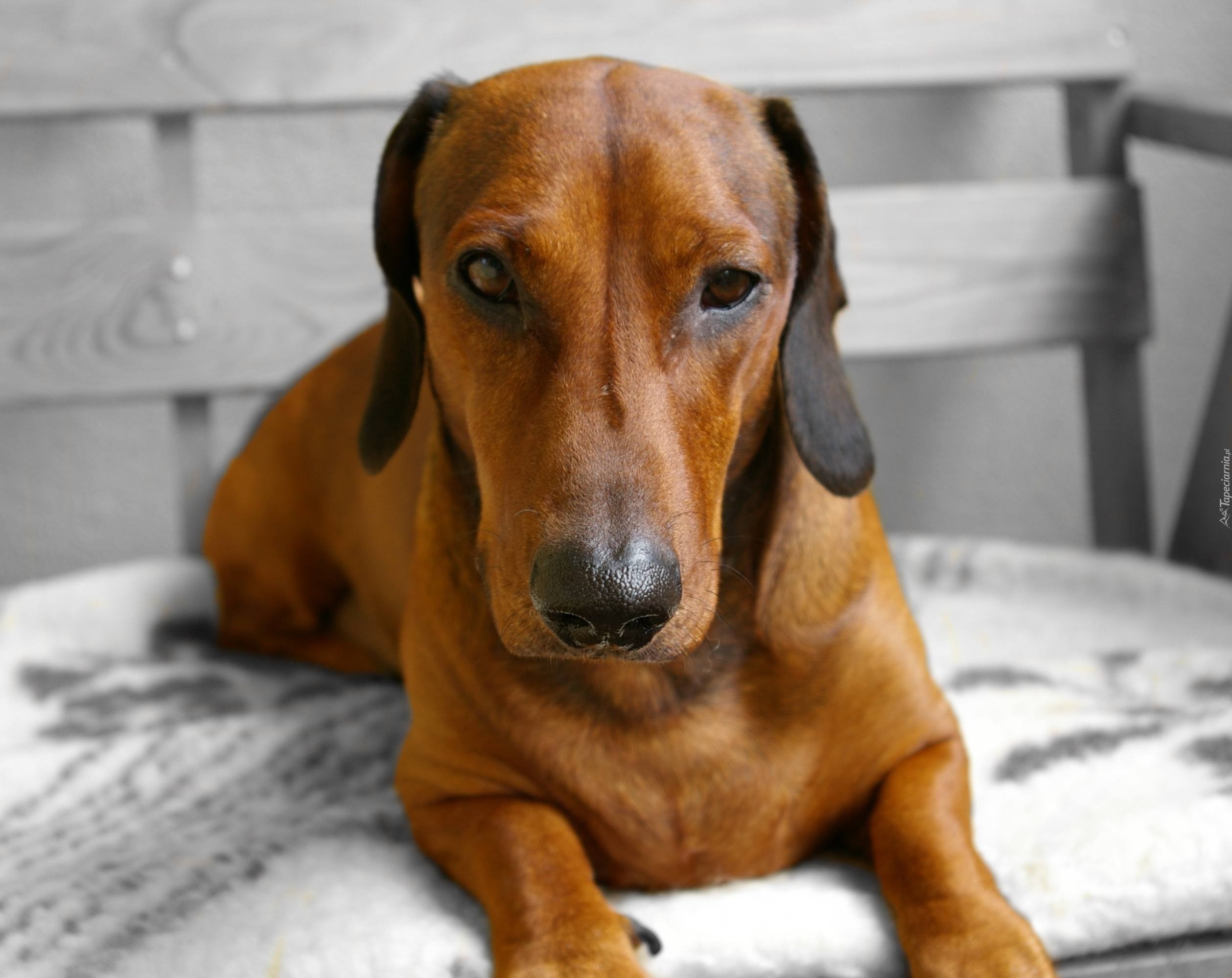 Edytor tapety: Jamnik, Ławeczka, Kocyk