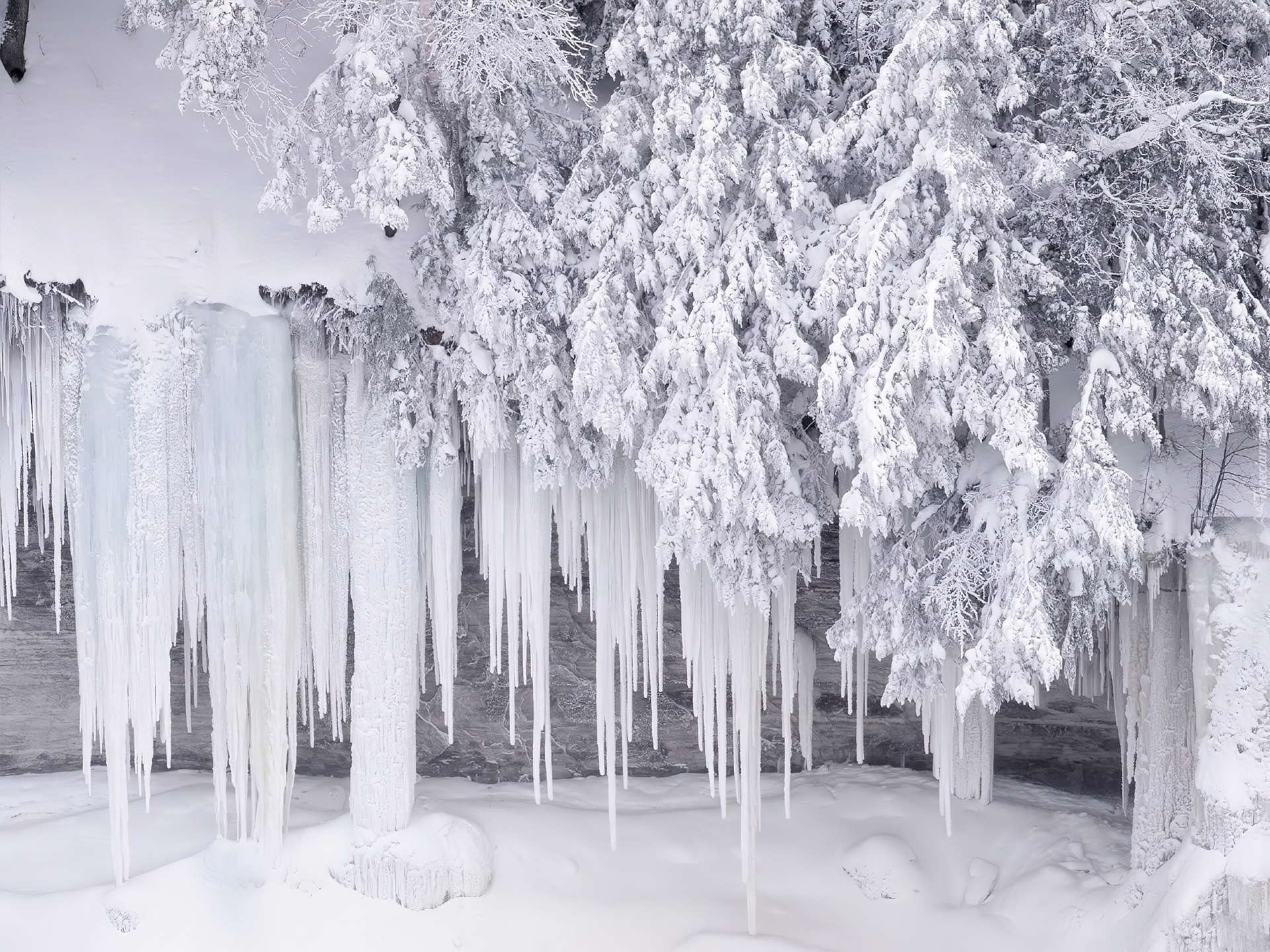 Edytor tapety: Sople, Śnieg, Zaspy, Gałęzie
