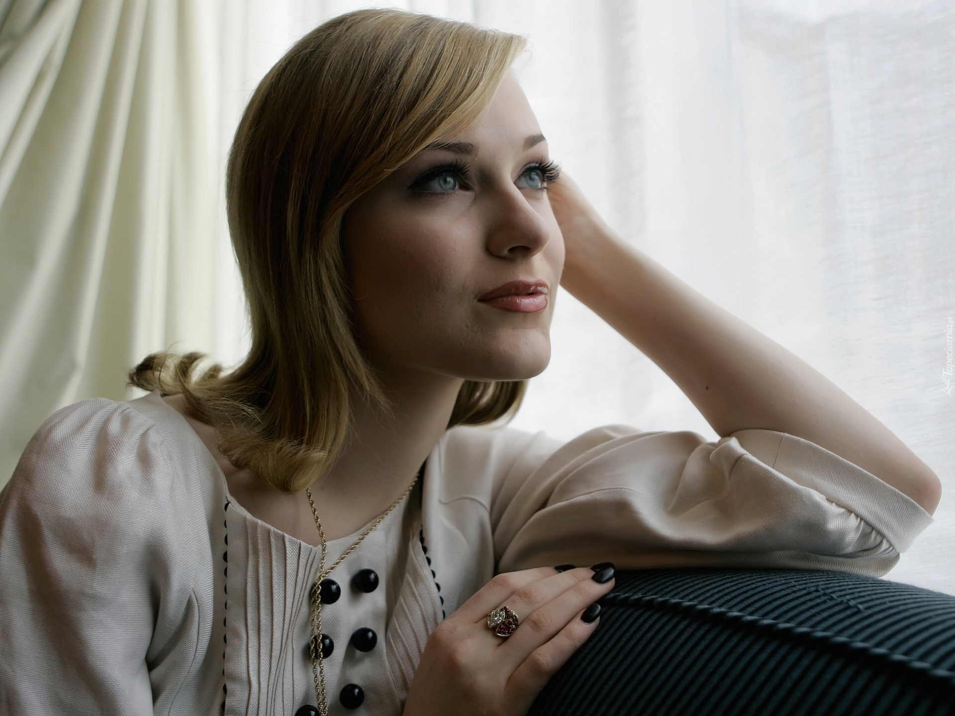 Edytor tapety: Evan Rachel Wood, Spojrzenie, Blondynka, Bluzeczka