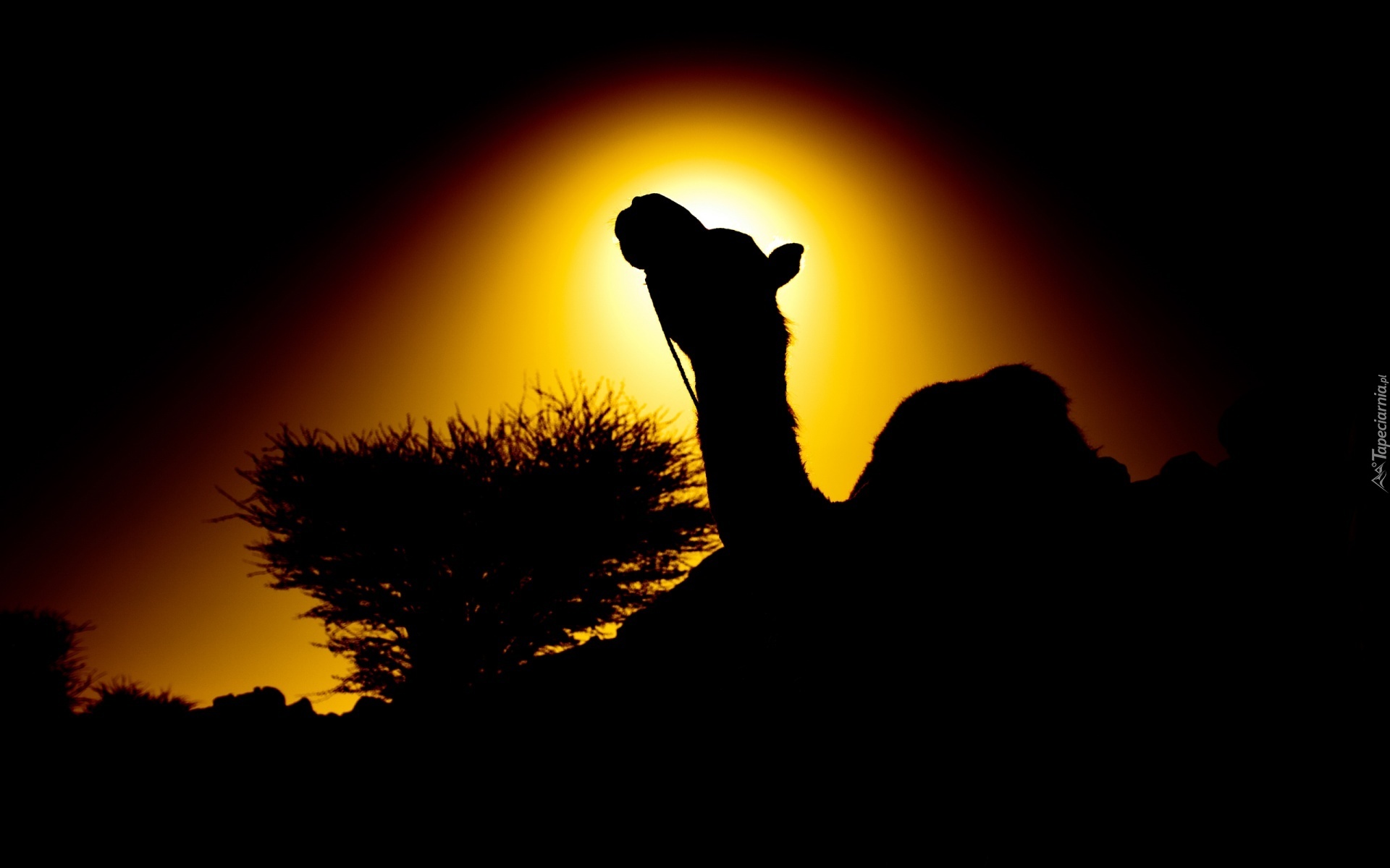Edytor tapety: Zachód, Słońca, Wielbłąd, Palma
