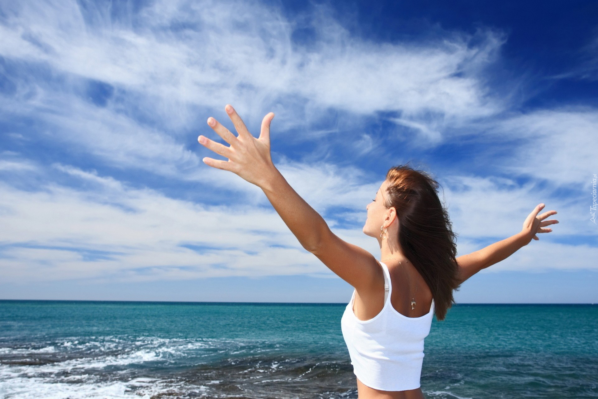Edytor tapety: Szczęśliwa, Dziewczyna, Włosy, Biała, Bluzeczka