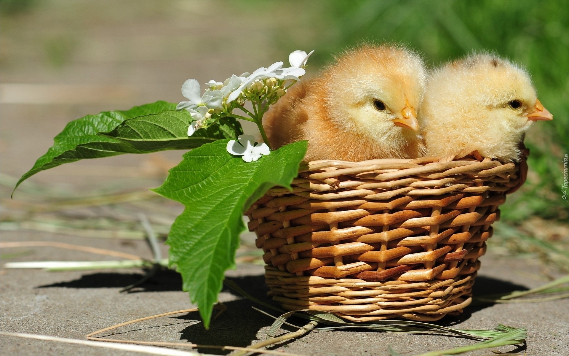 Edytor tapety: Koszyk, Kurczaczki, Kwiat