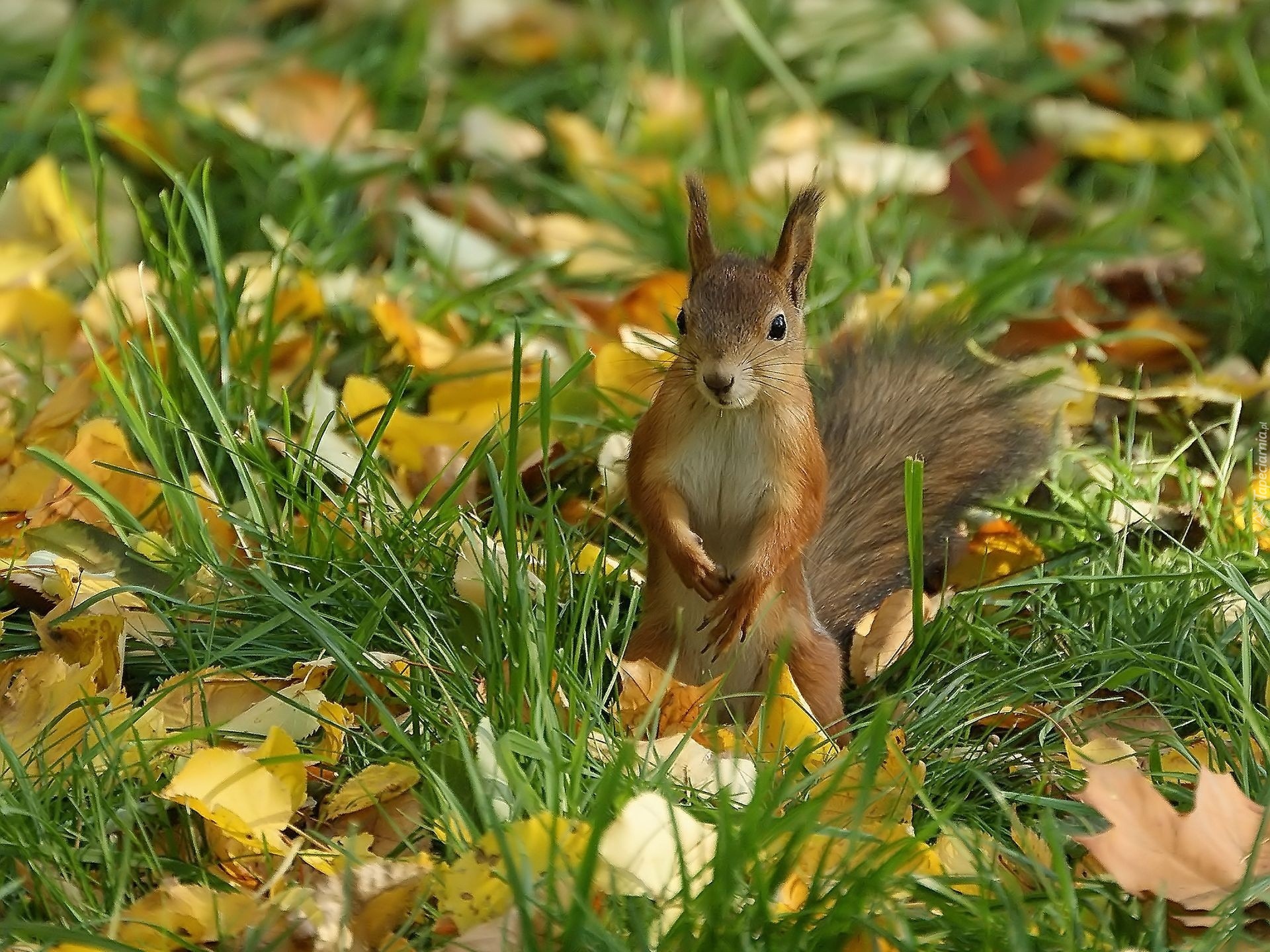Edytor tapety: Trawa, Liście, Wiewiórka