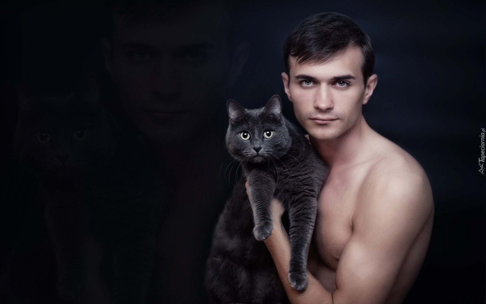 Edytor tapety: Mężczyzna, Nagi, Tors, Kot