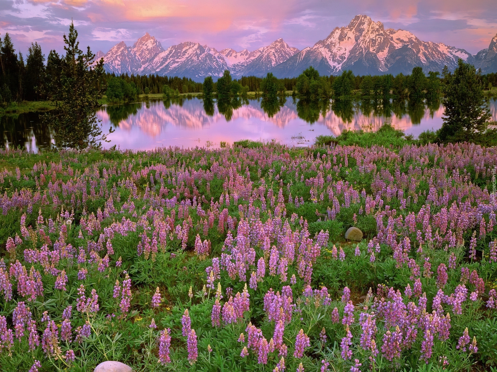 Edytor tapety: Jezioro, Góry, Kwiaty