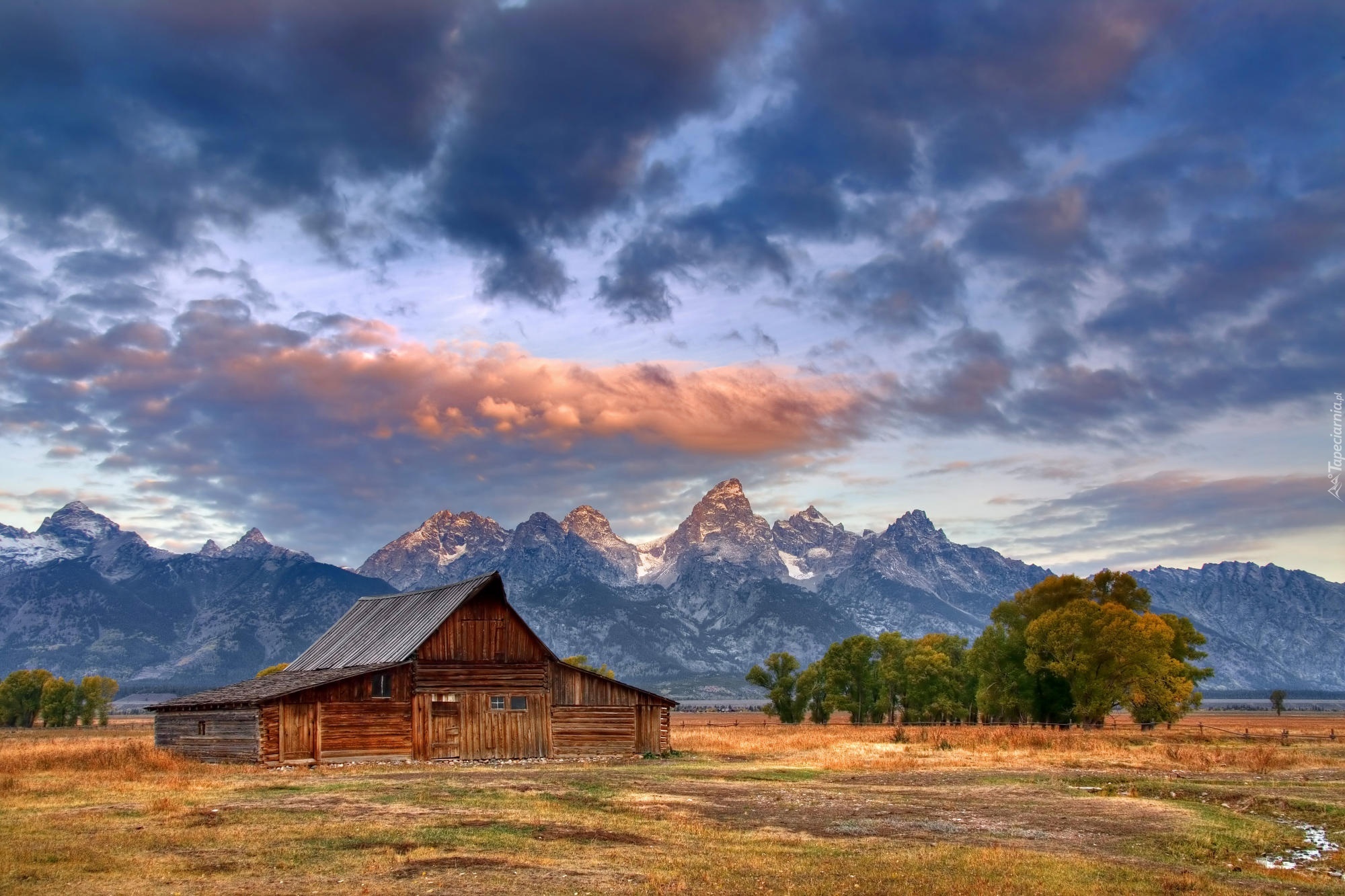 Edytor tapety: Stany Zjednoczone, Stan Wyoming, Park Narodowy Grand Teton, Góry Teton Range, Drewniany, Dom