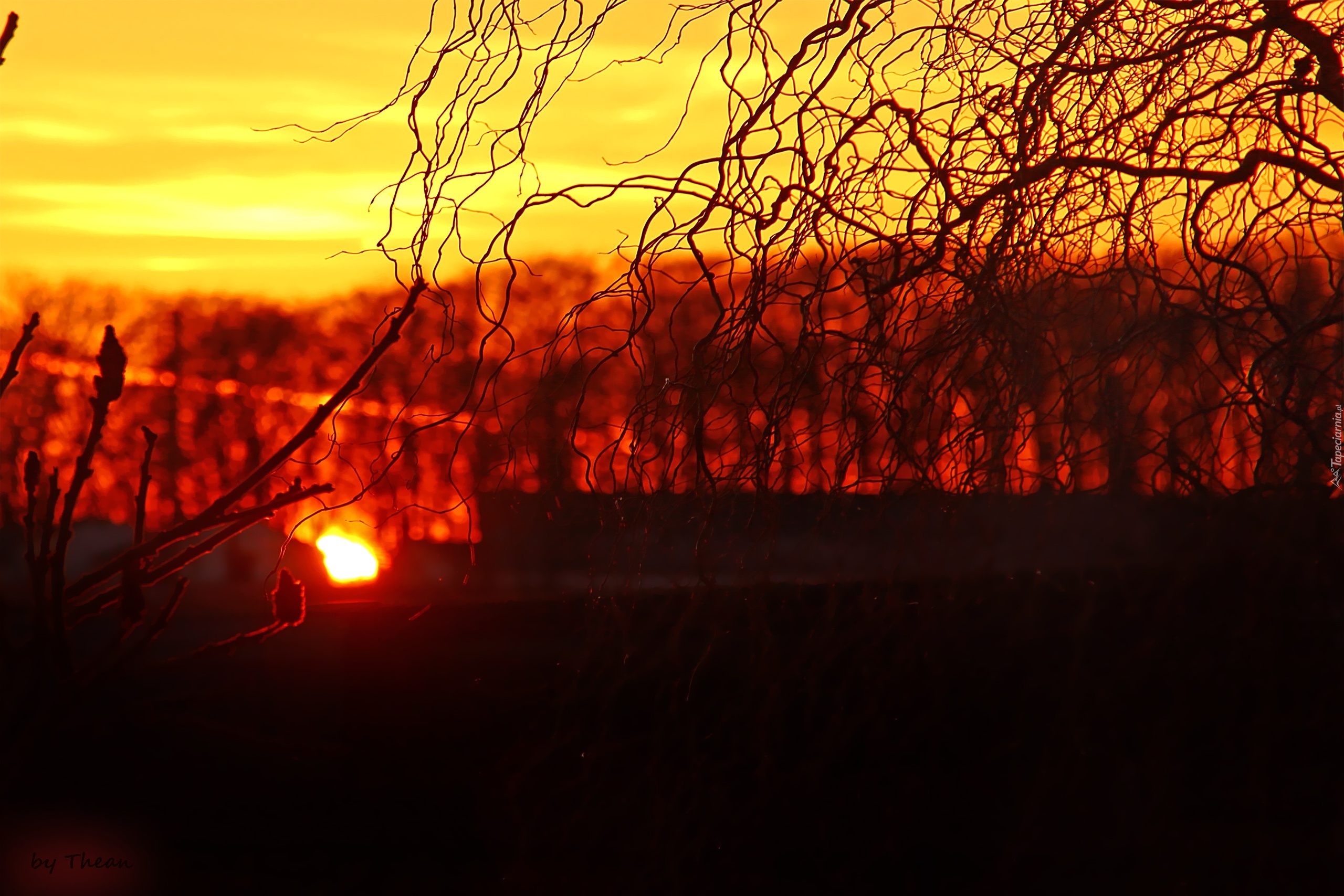 Edytor tapety: Zachód, Słońca, Budynki, Drzewa