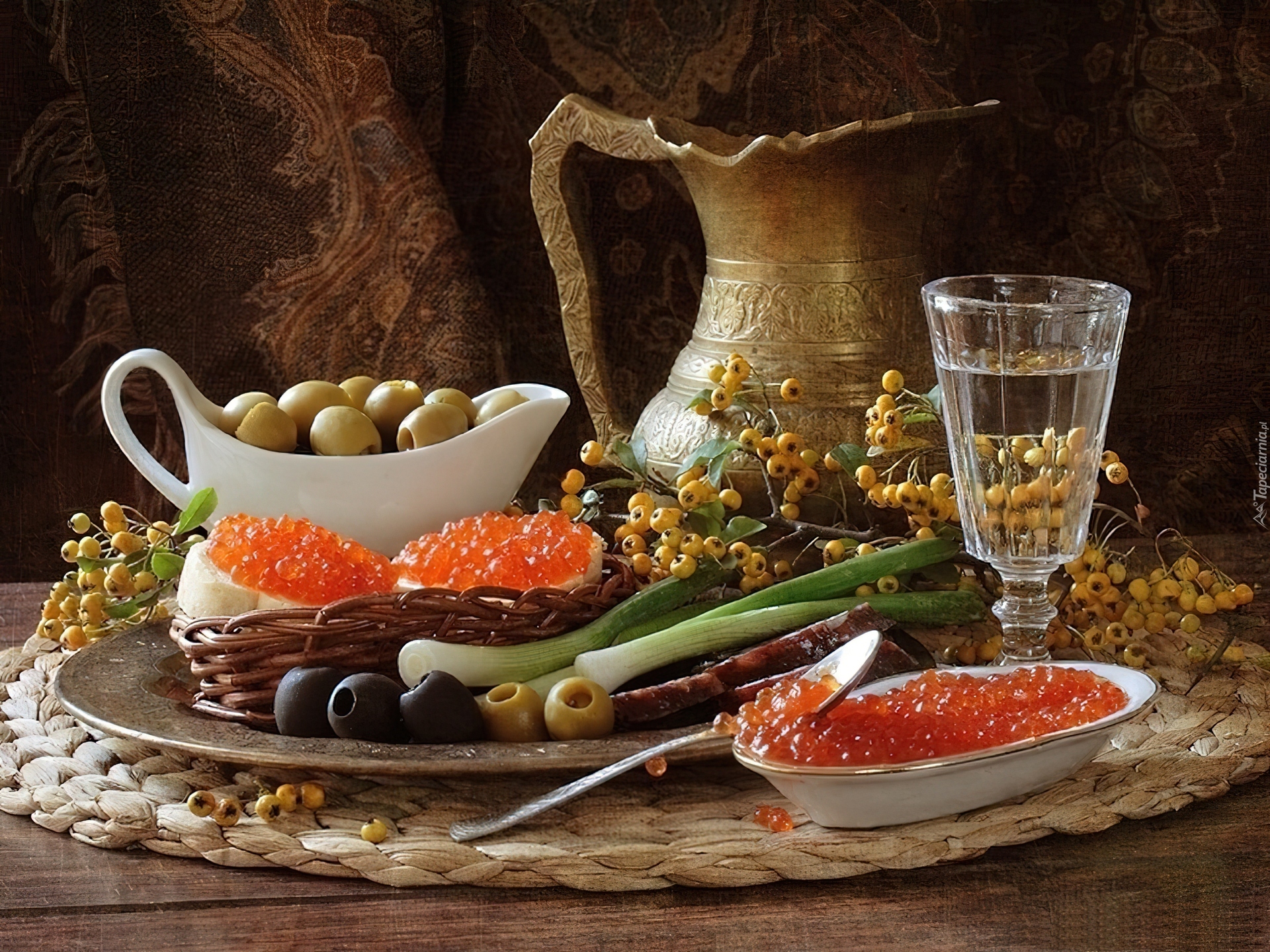 Edytor tapety: Naczynia, Kawior, Oliwki
