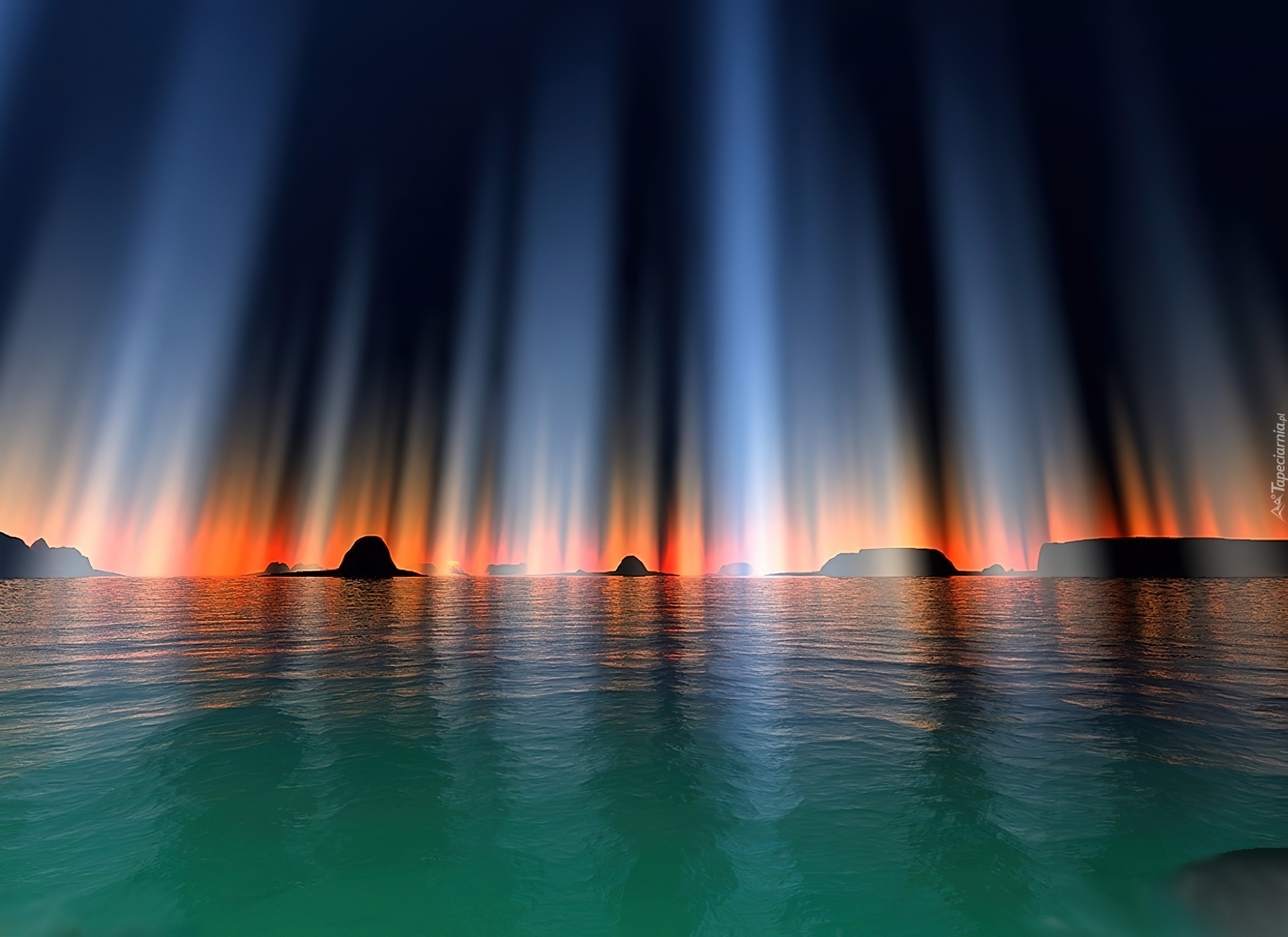 Edytor tapety: Morze, Skały, Słoneczne, Promienie