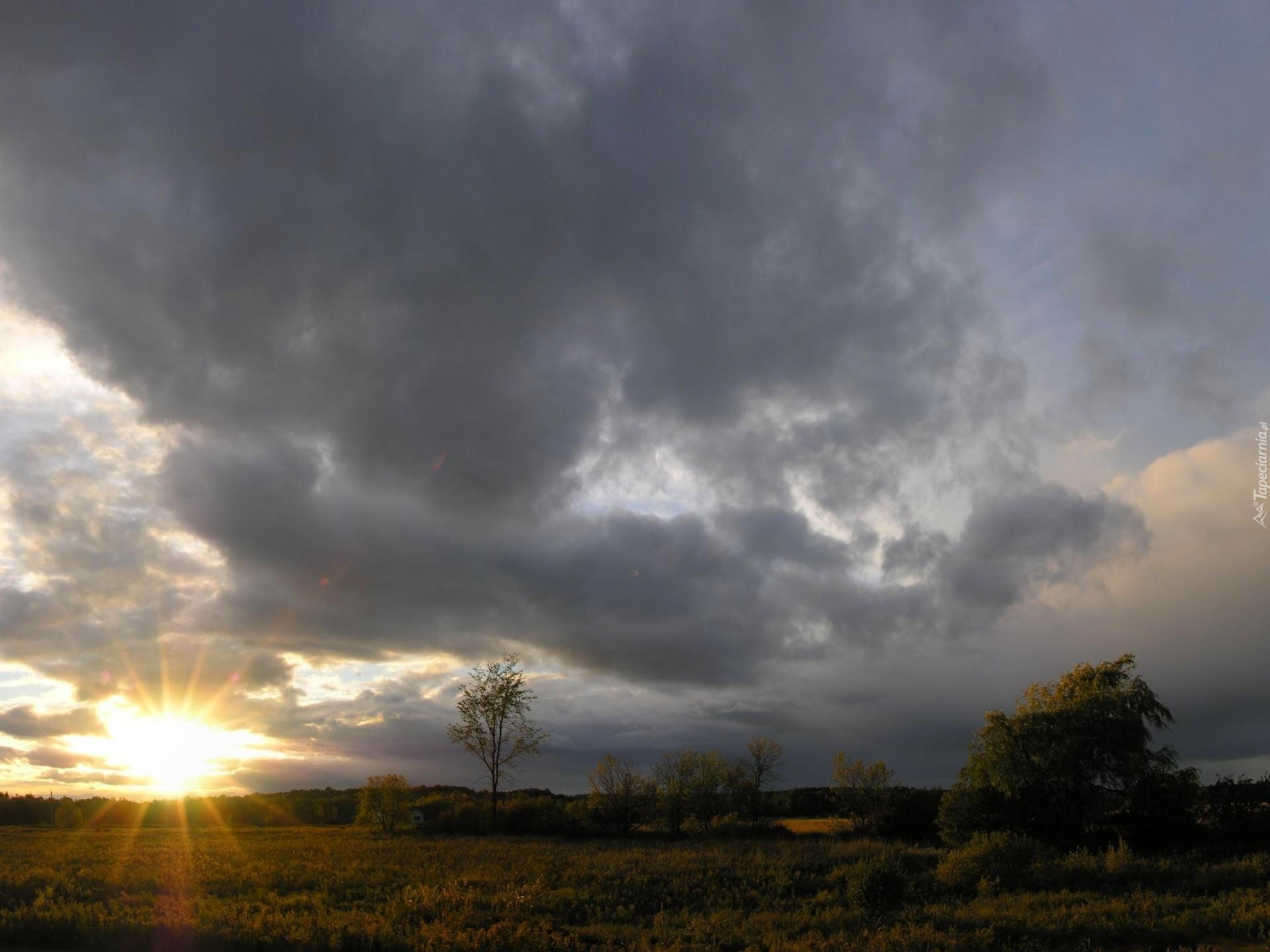 Edytor tapety: Zachód, Słońca, Promienie, Deszczowe, Chmury, Niebo