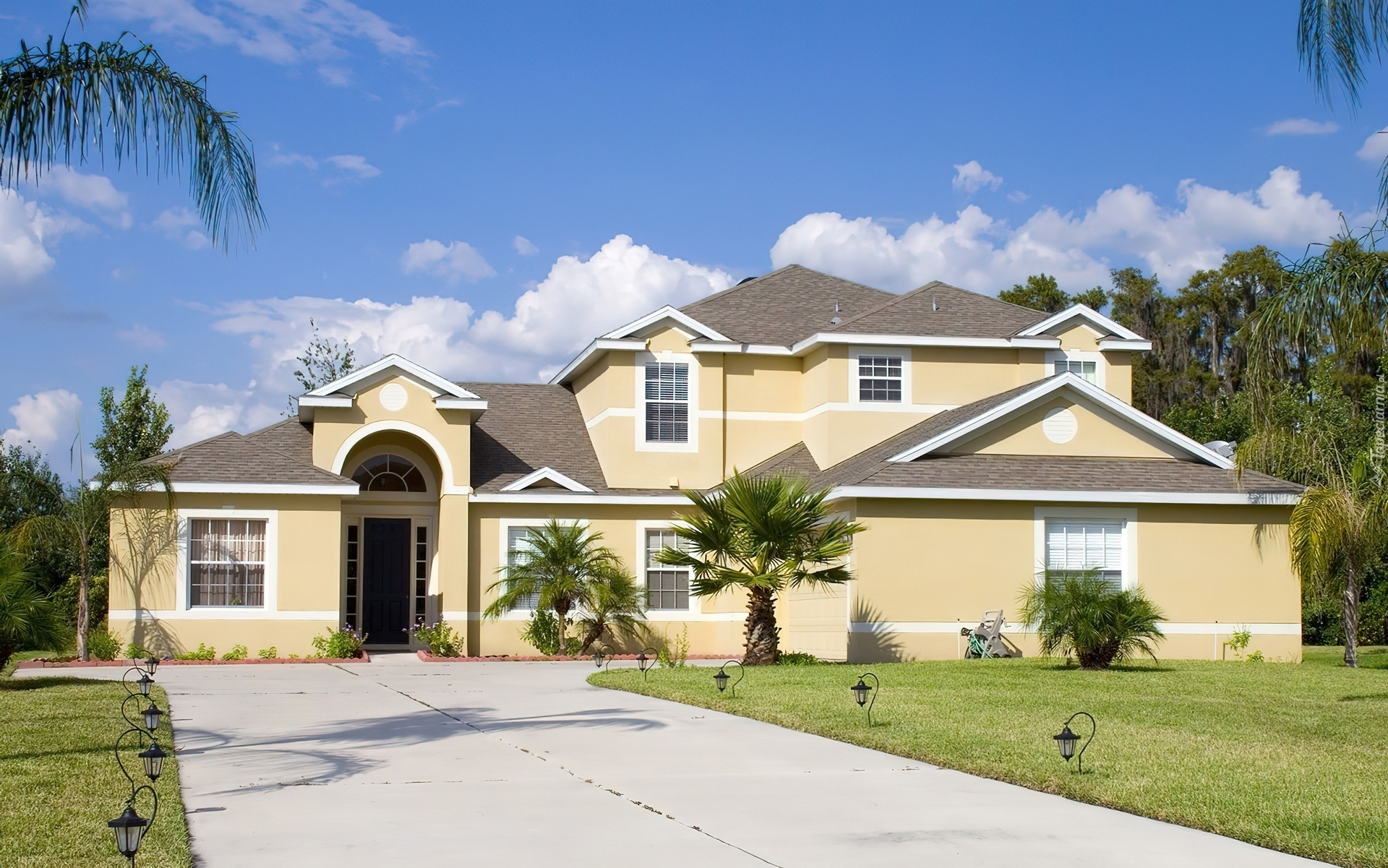 Edytor tapety: Dom, Willa, Trawnik, Palmy