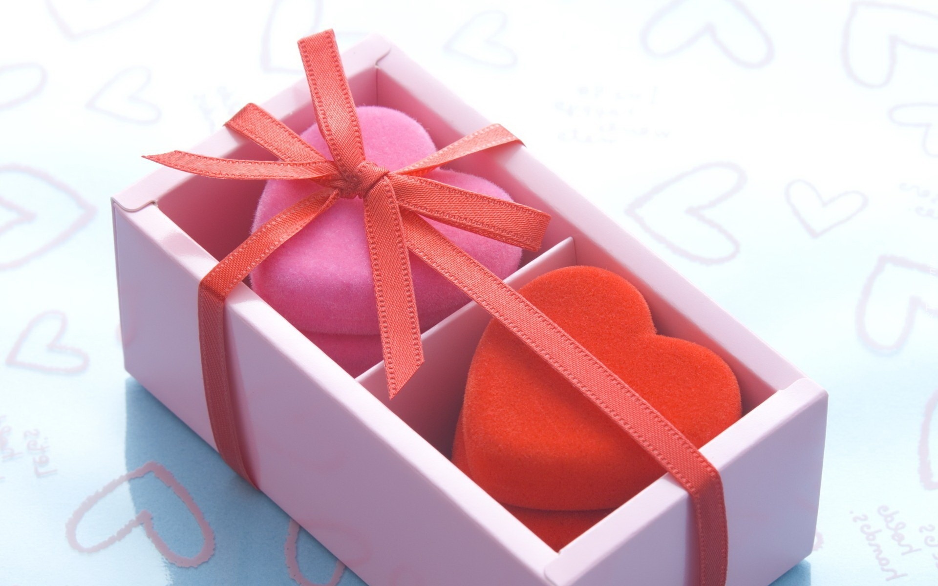 Edytor tapety: Pudełko, Serduszka, wstążka