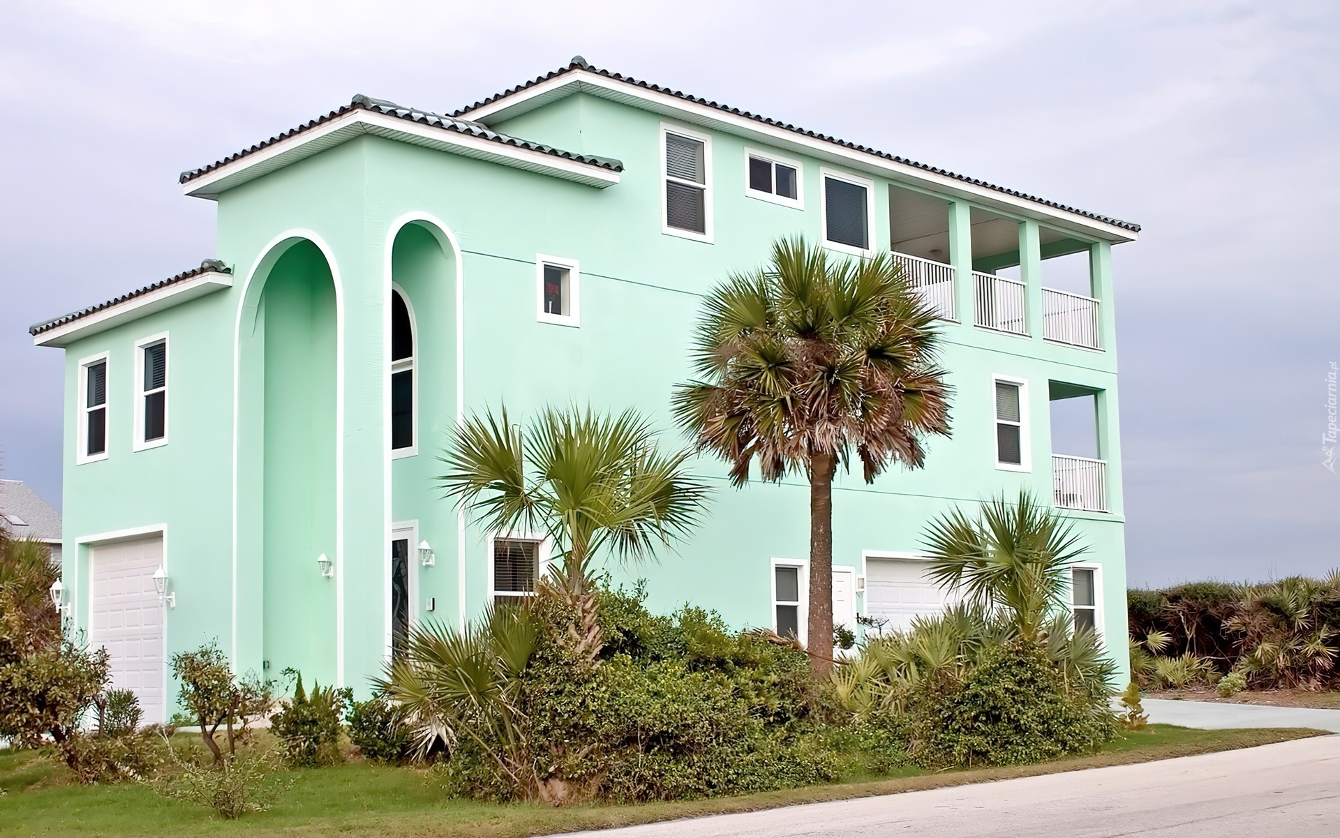 Edytor tapety: Piękny, Seledynowy, Dom, Palmy