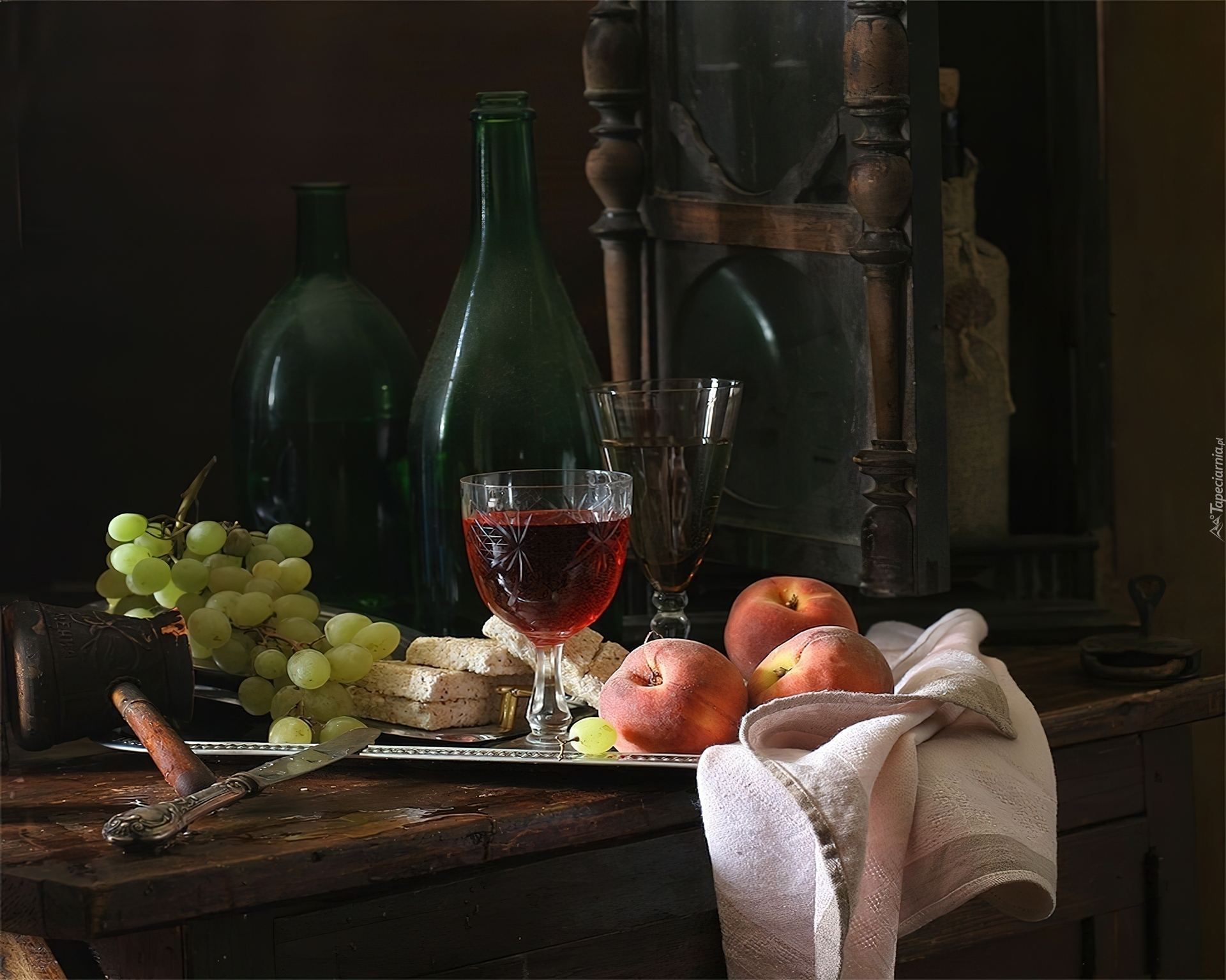 Edytor tapety: Owoce, Wino, Kieliszki, Butelki