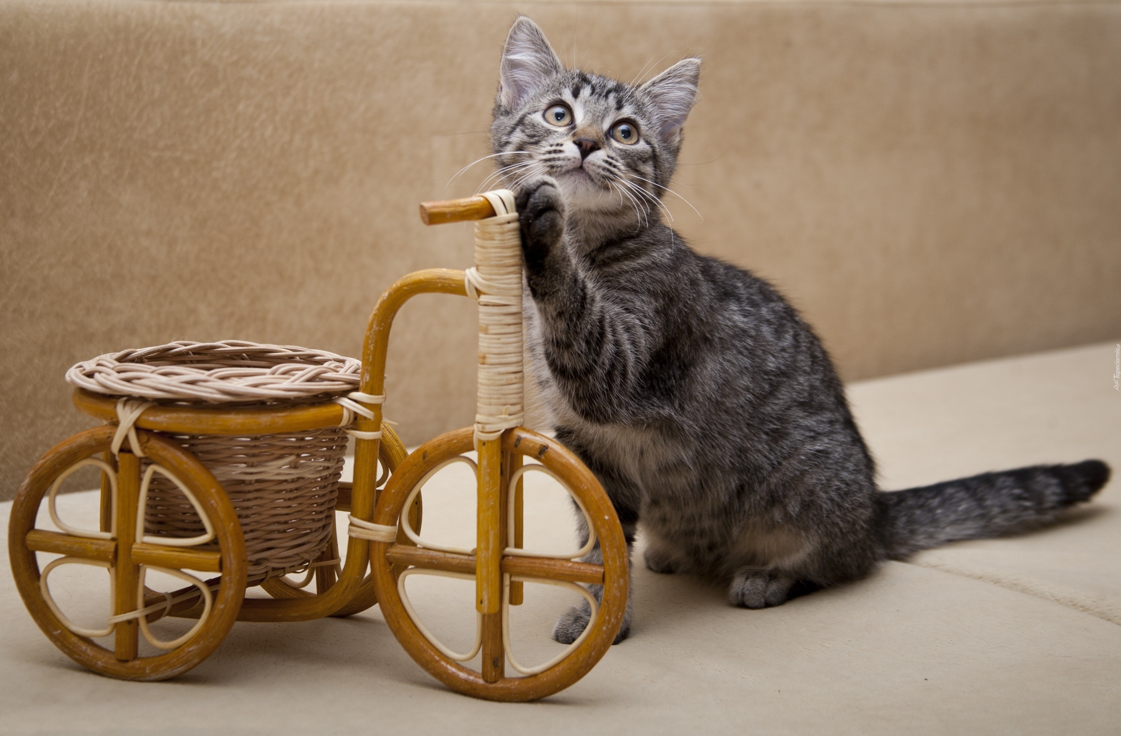 Edytor tapety: Mały, Kotek, Wiklinowy, Rowerek