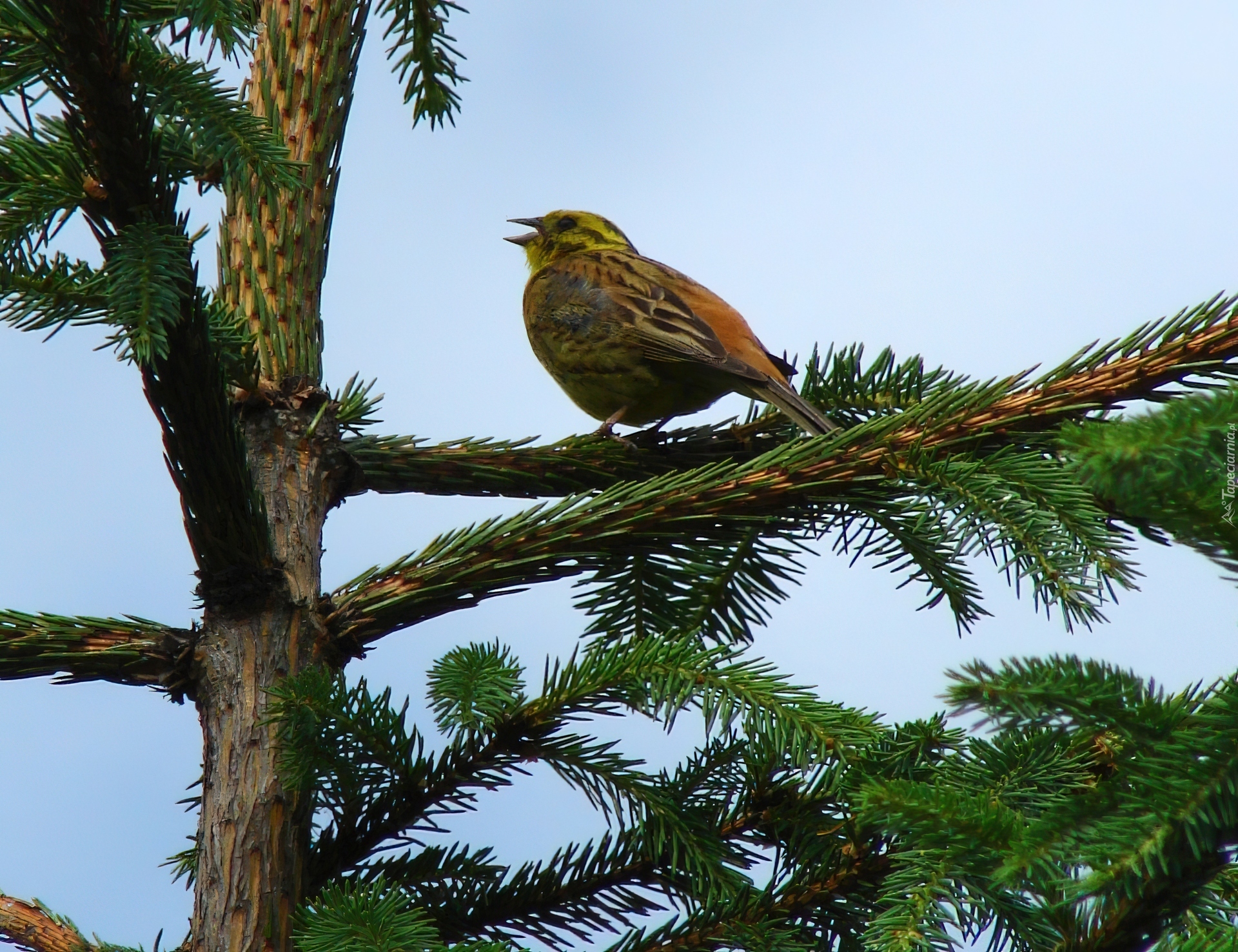 Edytor tapety: Trznadel, Iglaste, Drzewo