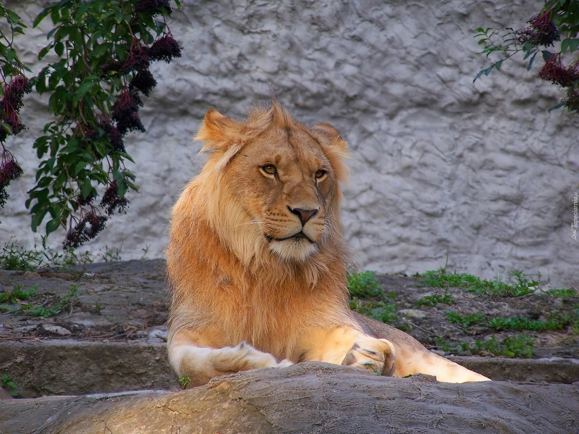 Edytor tapety: Lew, Skały, Zieleń