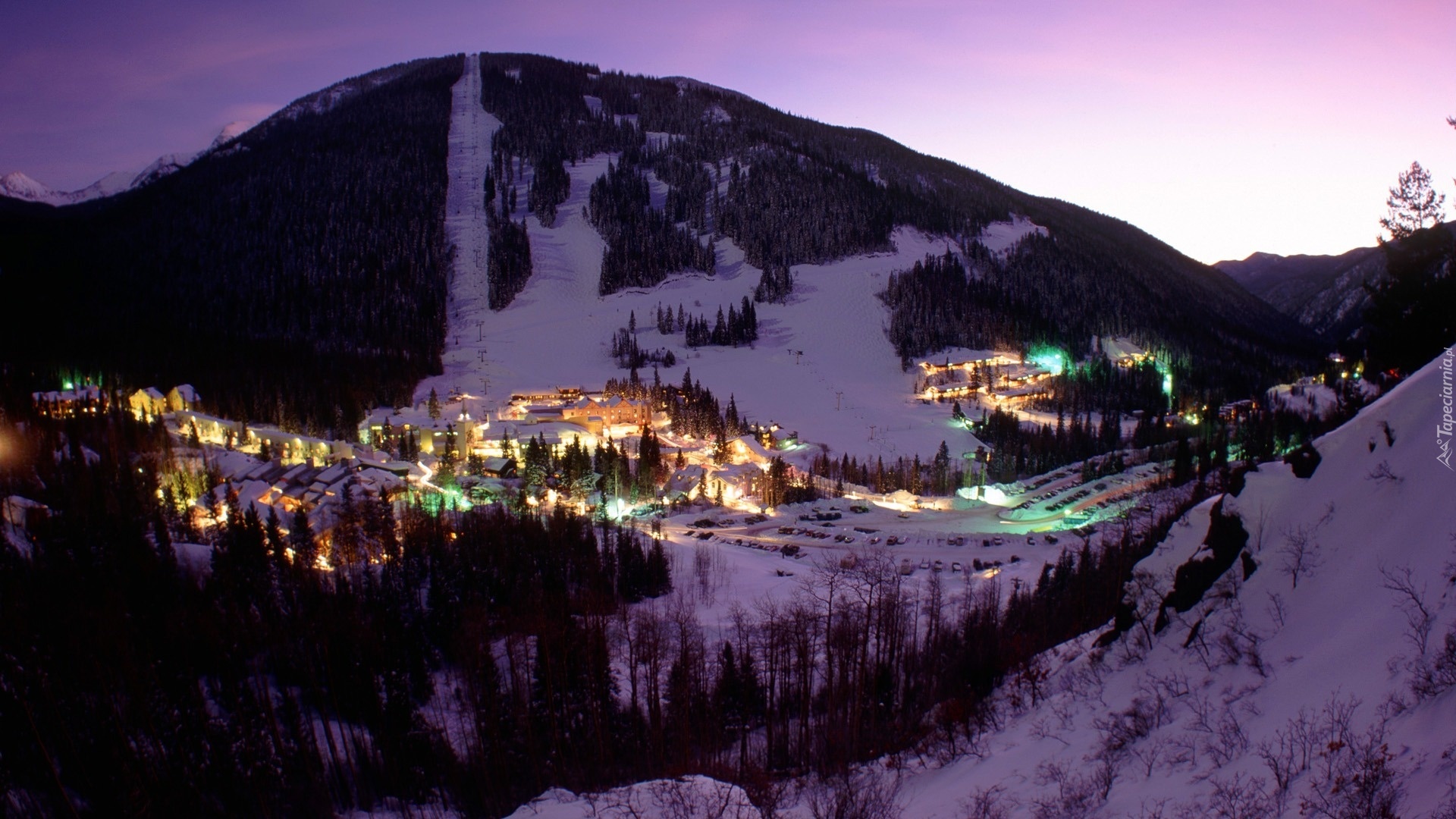 Edytor tapety: Miasto, Góry, Noc, Śnieg