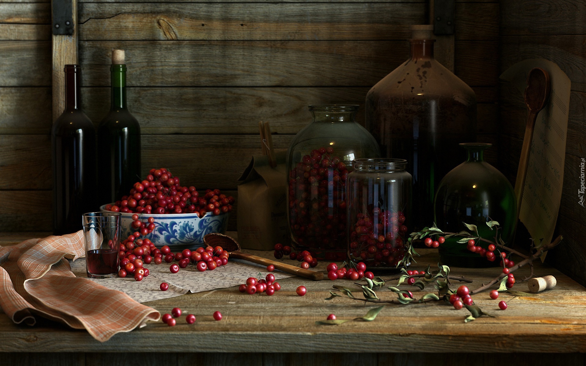 Edytor tapety: Butelki, Słoje, Owoce, Kaliny