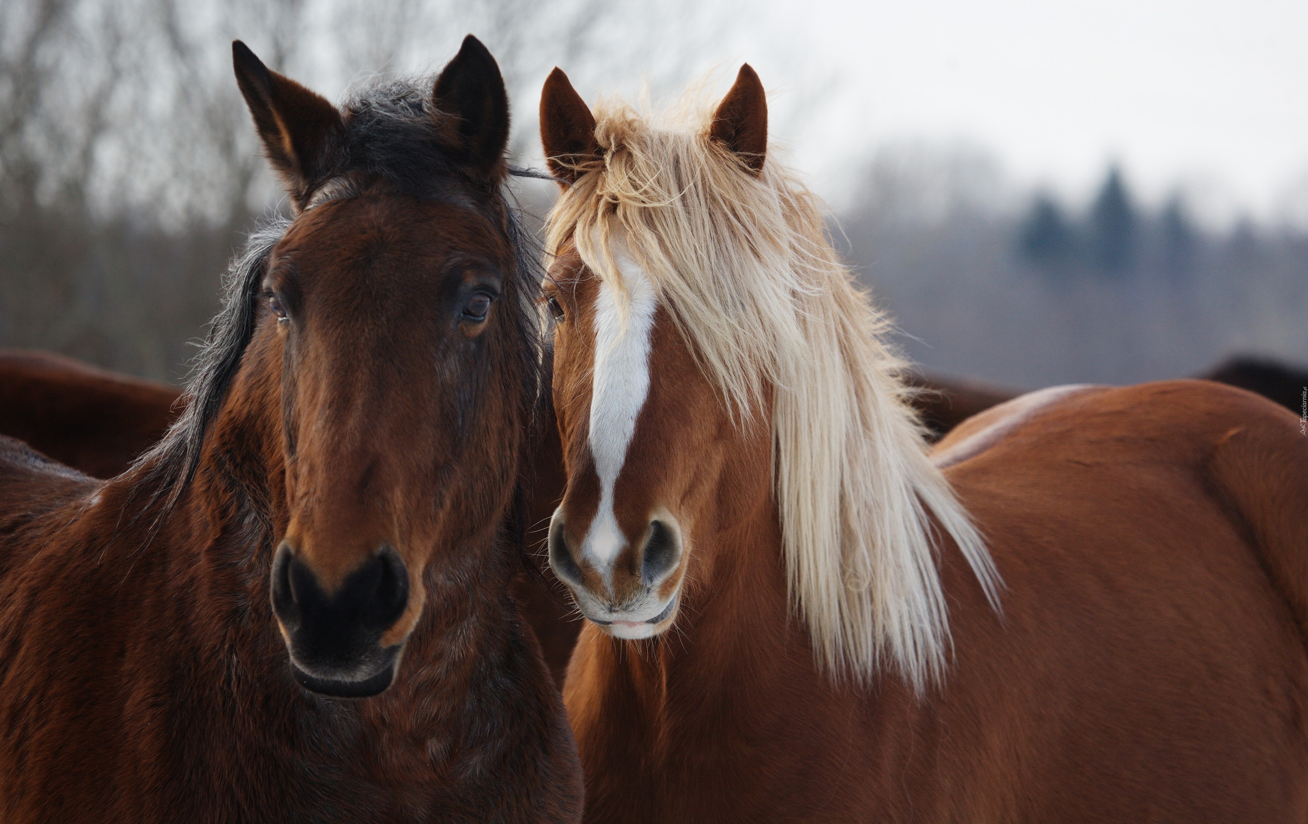 Edytor tapety: Dwa, Konie, Biała, Grzywa