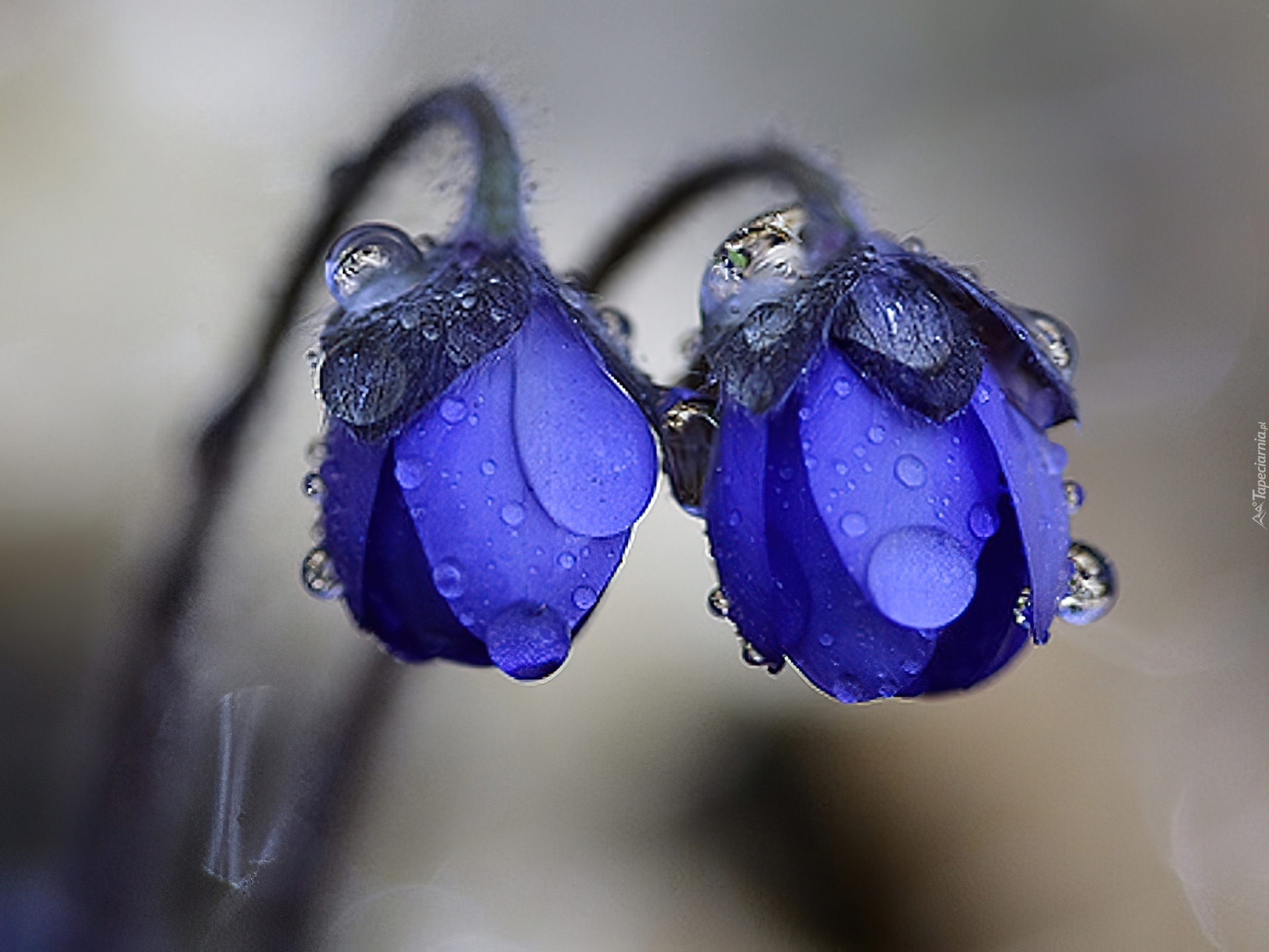 Edytor tapety: Niebieskie, Kwiaty, Krople, Rosy