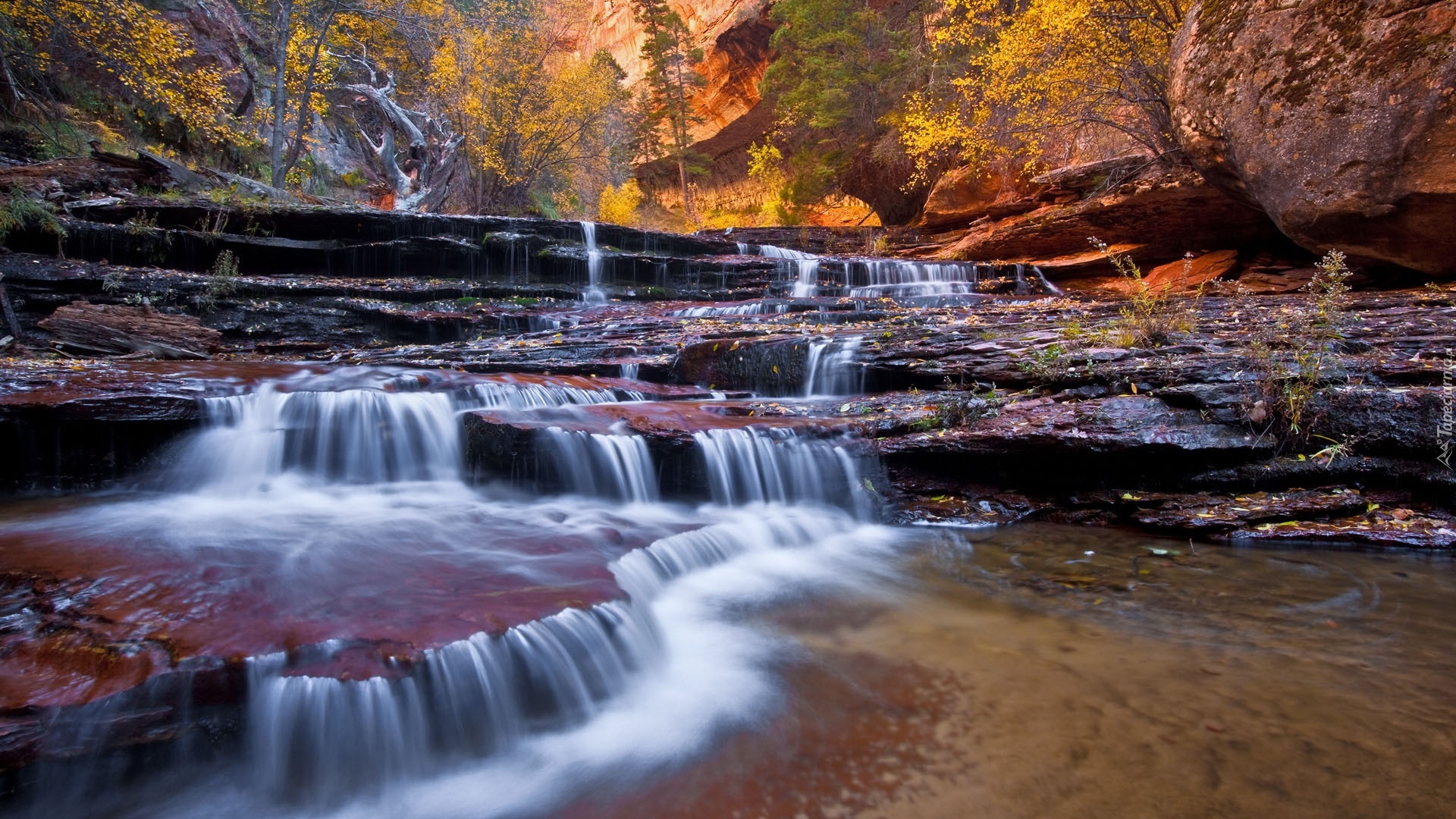 Edytor tapety: Rzeka, Rwąca, Skały, Drzewa